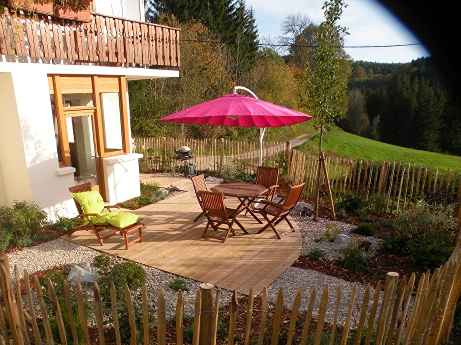 Idéalement situé a proximité des pistes de ski du Haut Jura ainsi que des lacs et cascades, charmant petit logement pour 2 personnes au RDC de la maison des propriétaires (abritant également un autre gîte pour 6 personnes). Hall d'entrée, cuisine entièrement équipée, coin salon avec TV écran plat, lecteur DVD et fauteuils, CH1: 1 lit 2 pl, salle d'eau et wc. Terrasse aménagée offrant une magnifique vue sur la nature environnante. Salon de jardin, parasol, barbecue et chaise longue à disposition. Produits de base (sel, poivre, huile, farine et sucre) produits d'entretiens, éponges et papier toilette fournis.