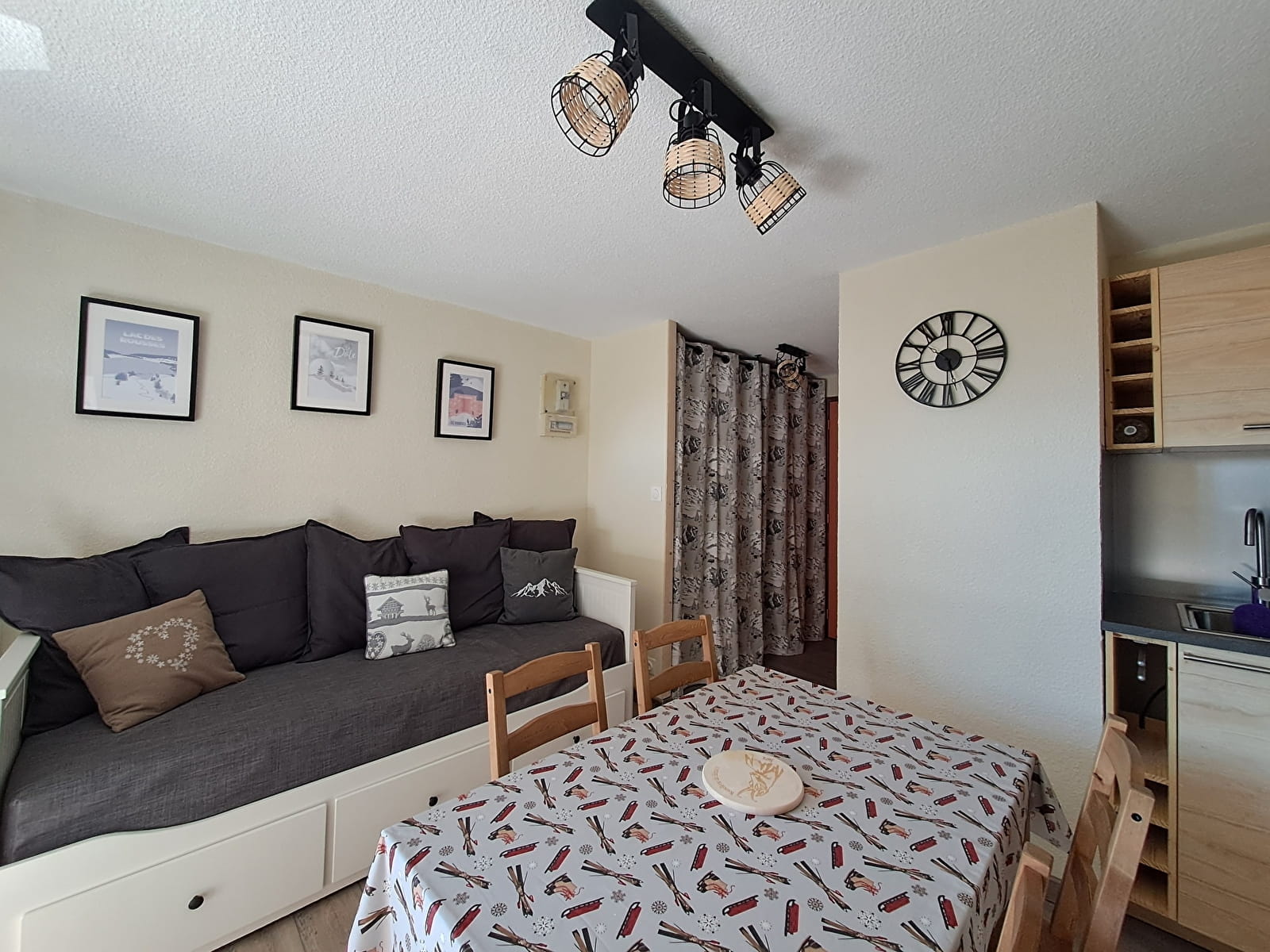 Situé dans la résidence "Le Risoux", ce studio de 26m² au 3ème étage est composé d’une pièce principale avec coin cuisine, canapé convertible en 160cm et un lit de 140cm. Salle de bain et WC indépendant.