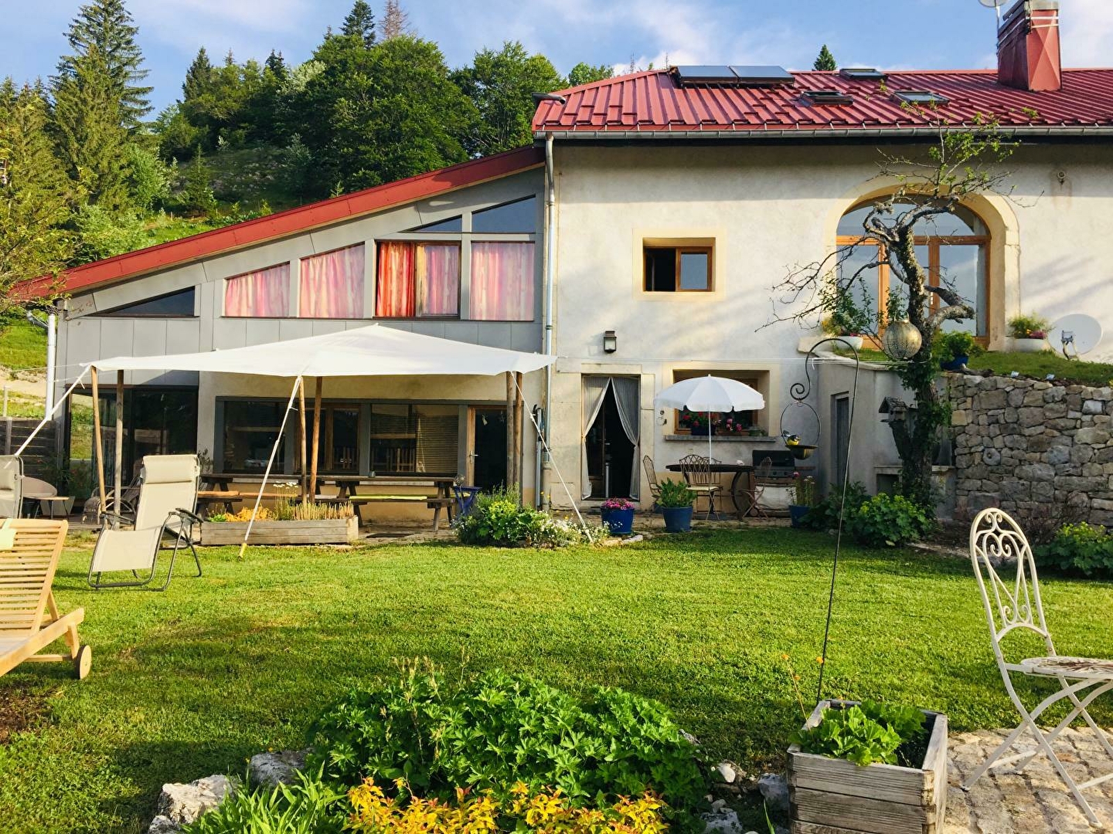 Belle maison mitoyenne en plaine nature, à 20mn de St Claude et à 10mn de Lamoura, offrant une vue splendide et dégagée sur les paysages de montagne. Rénovée avec des matériaux sains, le propriétaire utilise les énergies renouvelables (panneaux solaires, récupération d'eau de pluie, chauffage à granulés...) Au rez de chaussée : espace détente, cuisine équipée. A l'étage: mezzanine avec 2 lits 1 place, 1 salle de bains avec double vasques et baignoire balnéo. 1salle d'eau avec douche, wc indépendants. Chambre avec 1 lit 2 places et 1chambre avec 2 lits 1 place. Grand terrain attenant non clos, salon de jardin, barbecue. Lit et chaise bébé sur demande.