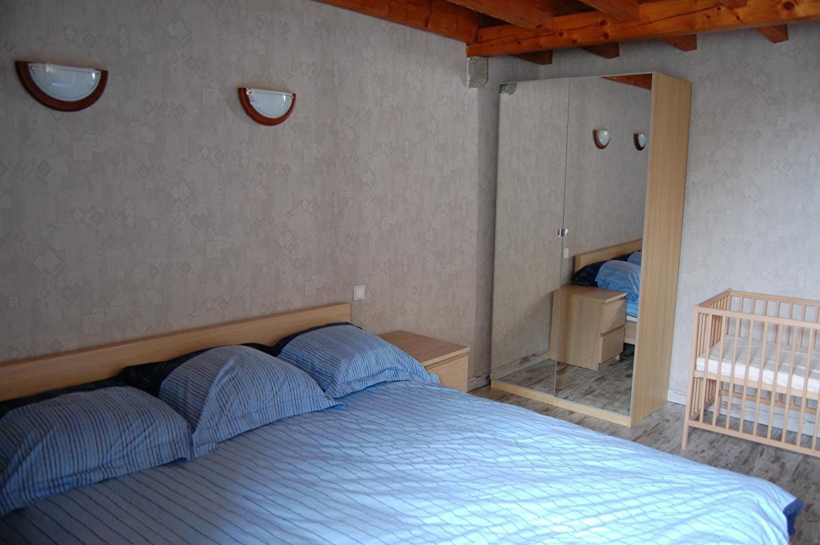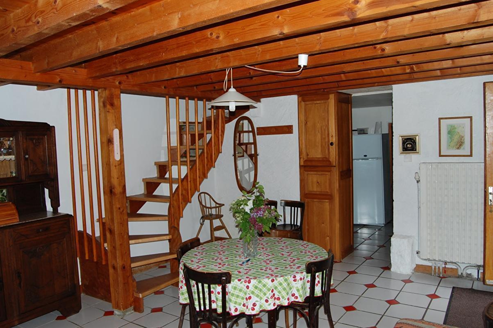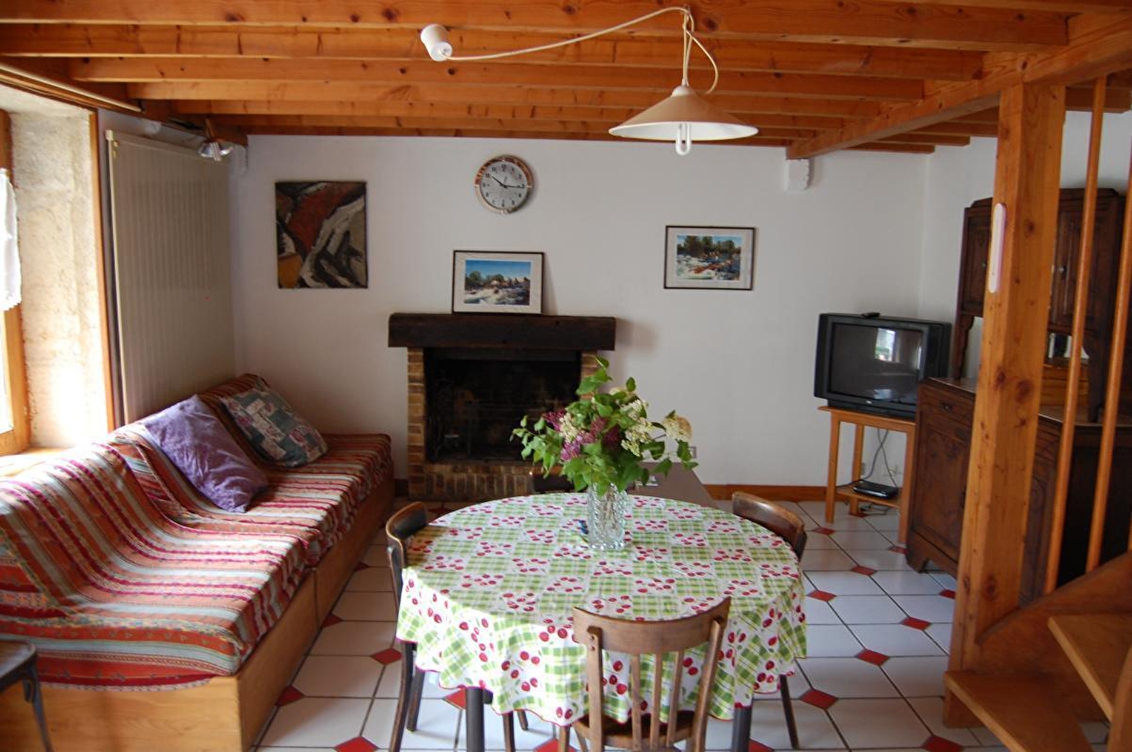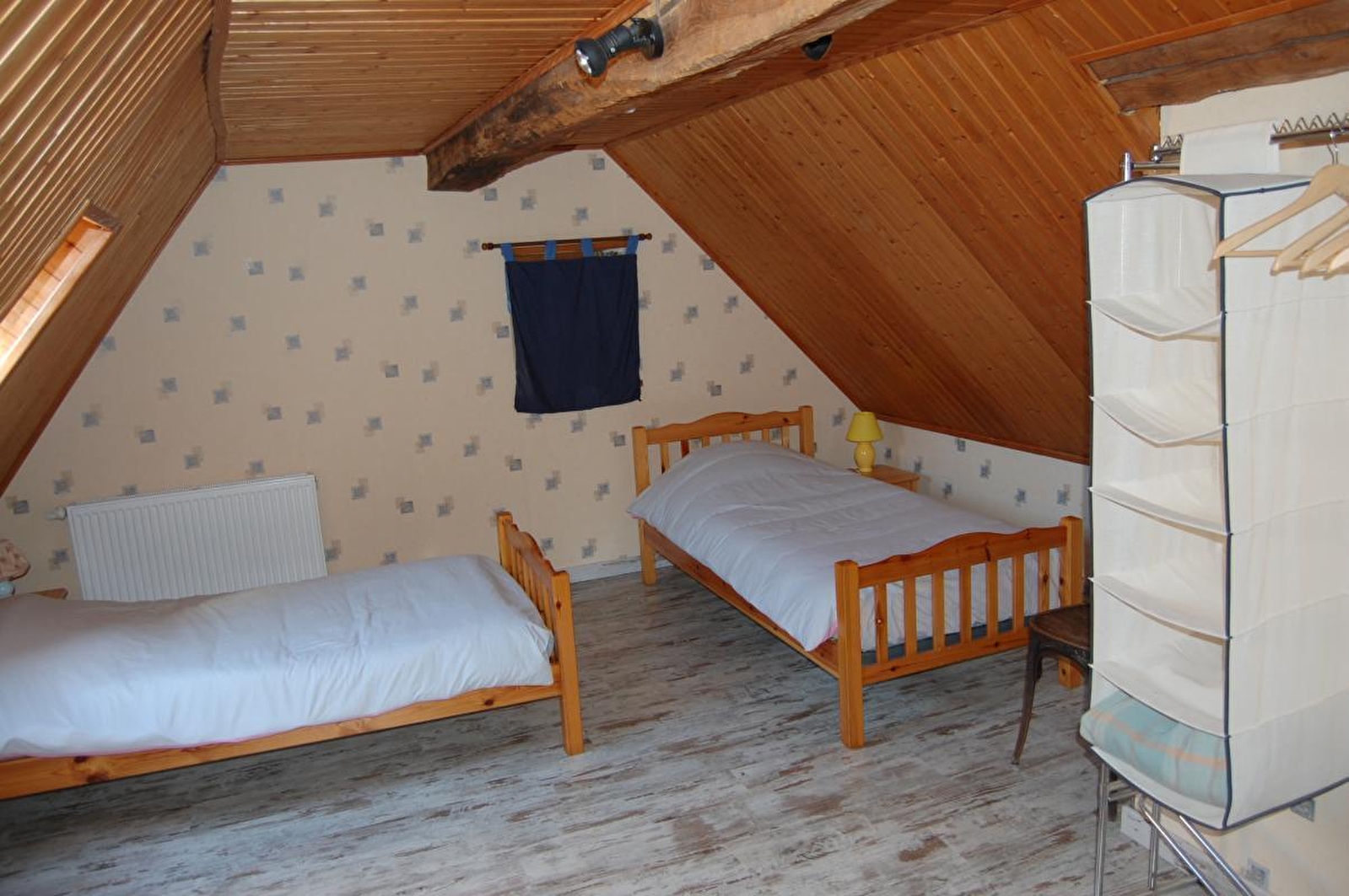 Logement en duplex, mitoyen avec un autre gîte. Au RDC: buanderie, cuisine, séjour salon équipé de la climatisation réversible. Au 1er étage: ch1: 1 lit 1 pl, ch2: 1 lit 2 pl (160*200), salle d'eau. Au 2ème étage (sous les toits): ch3: 3 lits 1 pl, cour et jardin non clos, salon de jardin, barbecue. Chauffage central et bois et climatisation réversible. Charges non comprises. A disposition: balançoire. Sur demande: chaise bébé.