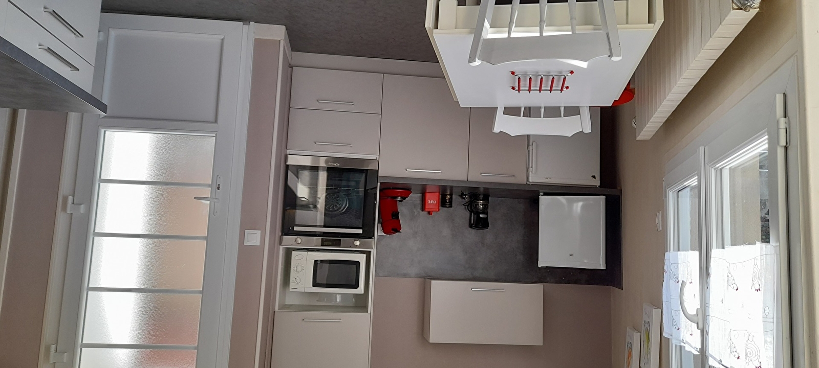 Appartement meublé 3 étoiles sur 2 niveaux. Cuisine équipée, salle de douche, WC, une chambre avec un lit de 140. Pièce de vie lumineuse avec canapé convertible, terrasse, jardin et cour privée, local vélo. A 5 minutes à pied du plan d'eau, de la voie verte et des commerces. A 1 kilomètre 500 en voiture ou à pieds des thermes. Environ 20 kilomètres du Parc Le Pal.