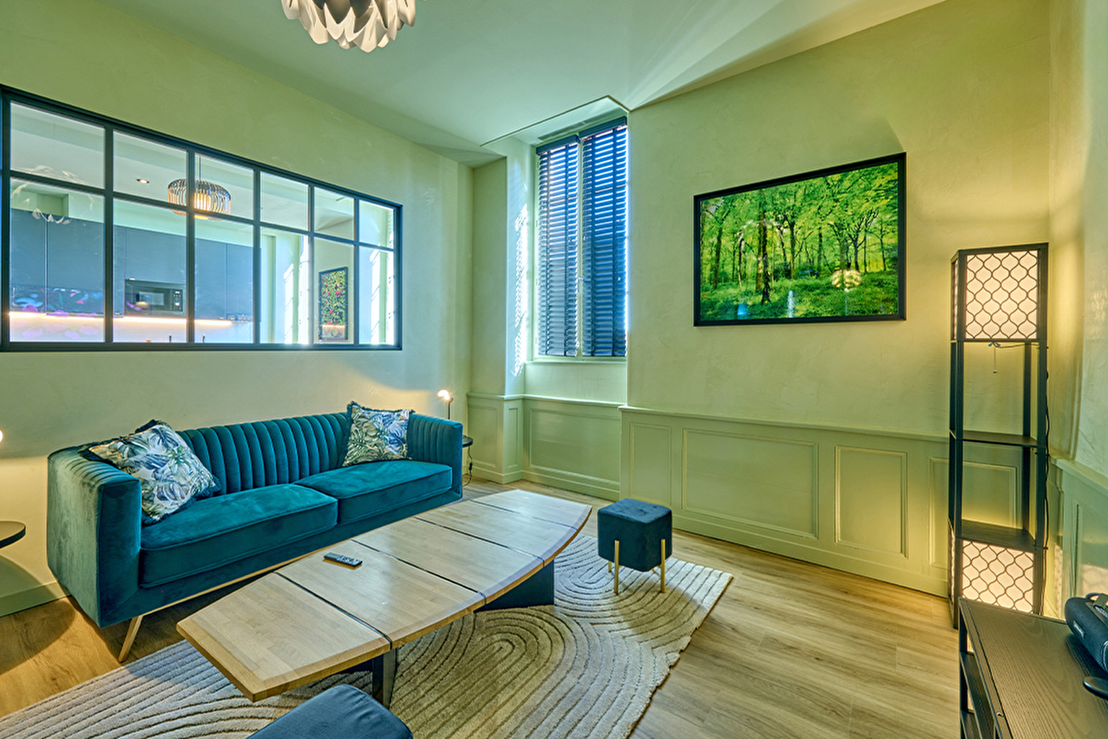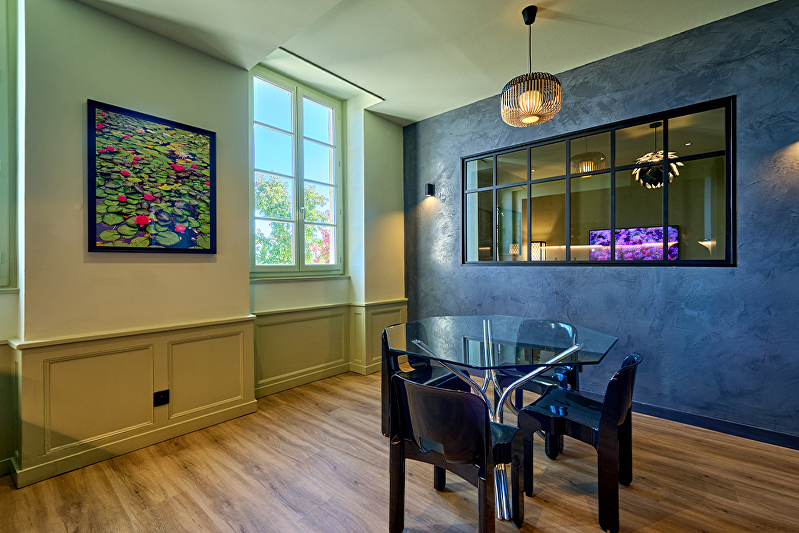 Appartement de standing situé à proximité de la Cathédrale et du Palais de Justice, dans la résidence privée « Les Suites du Palais » avec parking. Spacieux, calme et lumineux, il constitue le cadre idéal pour un séjour professionnel ou en couple. Entièrement équipé et aménagé comme un appart-hôtel, il allie confort et convivialité. Son emplacement privilégié permet d’accéder facilement et