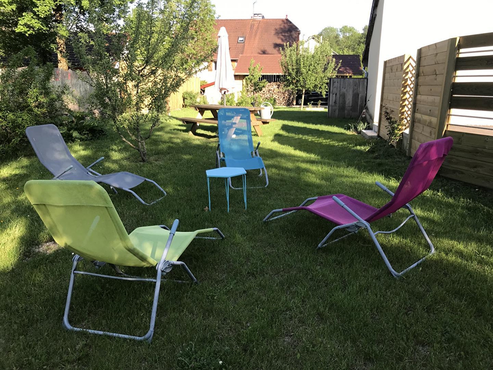 Gîte agréable décoré avec goût, situé au 1er étage d'une maison, à quelques kilomètres de la rivière l'Ain (1ère catégorie). Hall d'entrée, cuisine entièrement équipée, pièce à vivre avec salle à manger et salon (poele à bois), Ch1 : 1 lit 2 places, salle d'eau (douche), WC indépendant, Ch2 : 1 lit 2 place et 2 lits 1 place superposés. Terrain privatif situé au RDC du gîte avec salon de jardin et barbecue, buanderie en commun avec un autre gîte (lave-linge).