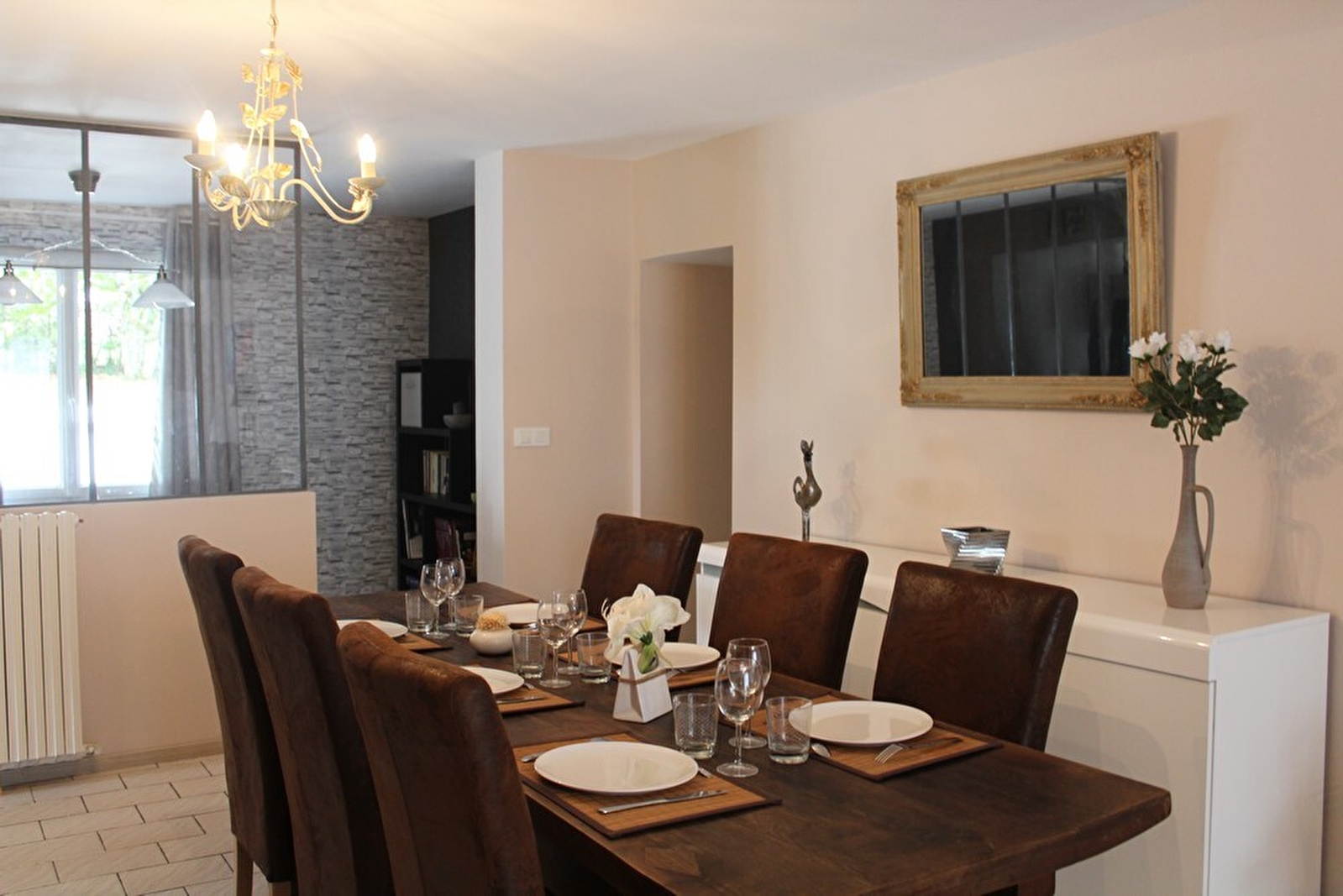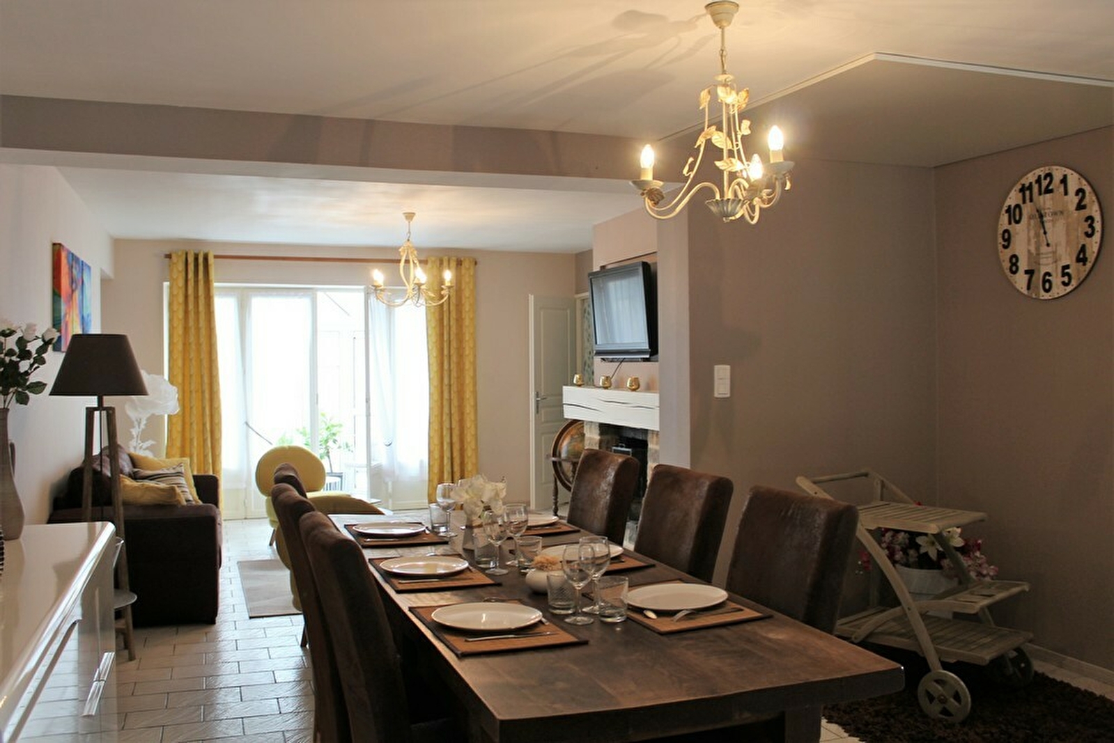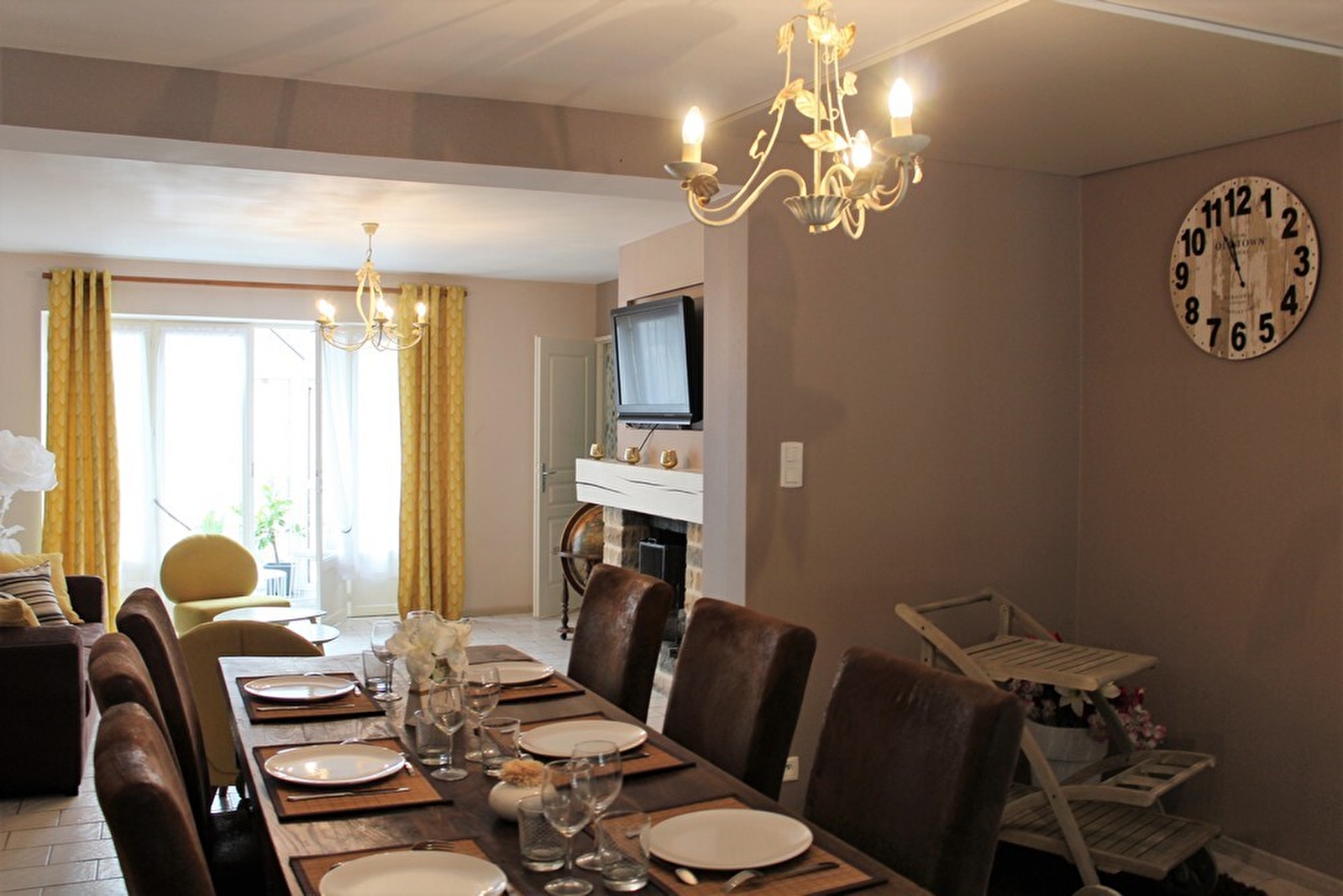 Venez découvrir cette jolie maison mitoyenne de plain-pied, entièrement rénovée, située au coeur de la Bresse Jurassienne. Les commerces sont à deux pas de la maison, ainsi que la base nautique de Desnes. Vous serez également à proximité du splendide vignoble et de ses principaux sites touristiques tels que Château-Chalon, Baume-les-messieurs ou encore la ville thermale de Lons le Saunier. Vous disposerez d'une vaste pièce à vivre composée d'une salle à manger, d'un espace salon avec grande télévision écran plat et d'un coin lecture et bibliothèque. Cuisine entièrement équipée et trois chambres avec chacune un lit de 160x200cm et télévision. Vous trouverez également une salle de bain (baignoire) ainsi qu'une salle d'eau avec grande douche à l'italienne. WC indépendants. En fonction de la météo, vous pourrez profiter comme bon vous semble de la véranda aménagée en coin cosy, ou de la terrasse derrière la maison, équipée d'un salon de jardin, barbecue et transats. Terrain attenant non clos. Pour votre confort, les lits seront faits à l'arrivée.