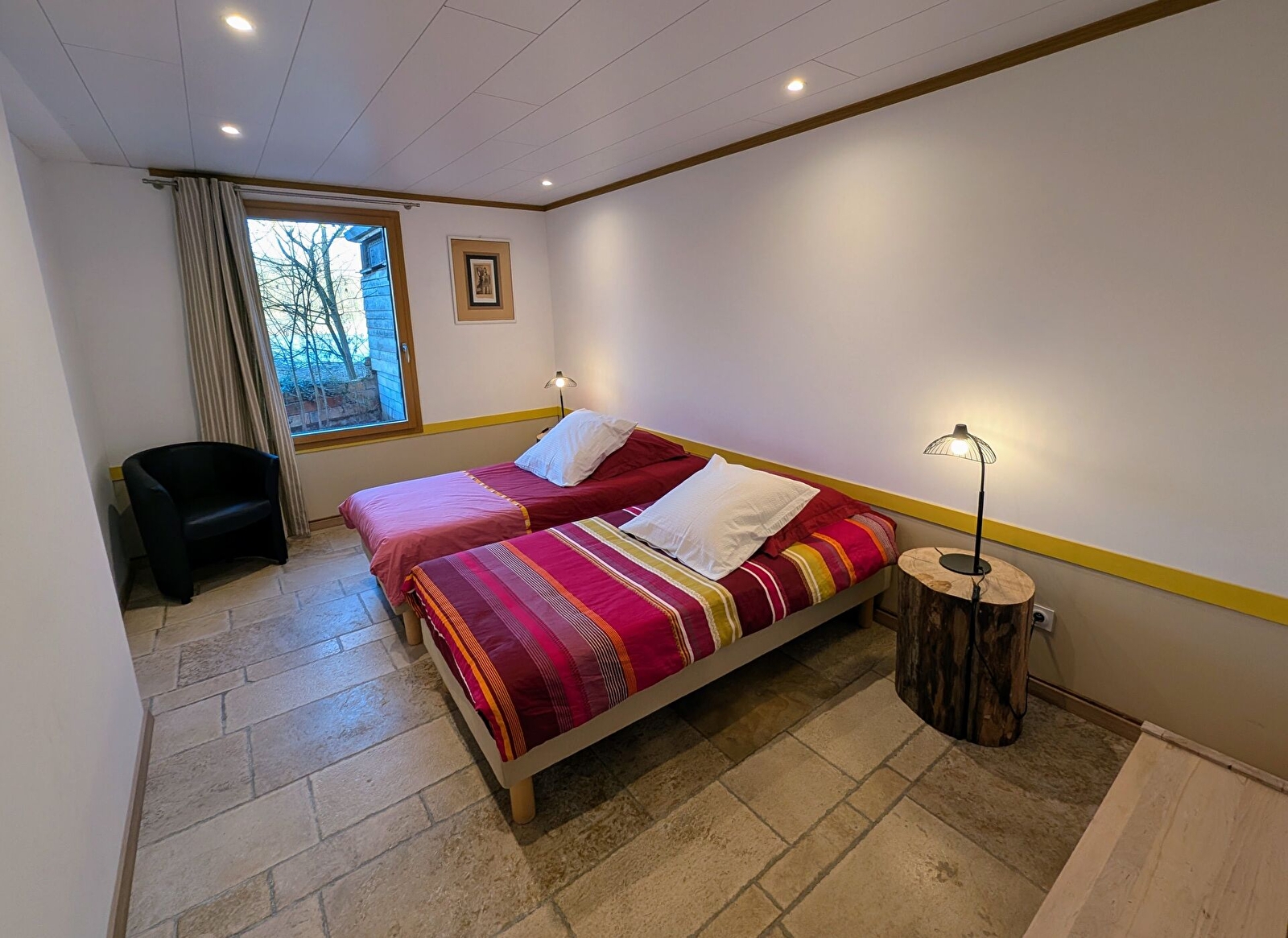 Dans un cadre moderne et chaleureux, ce gîte tout confort, proposé en tout compris, peut accueillir jusqu’à 6 personnes. Il se compose de 3 chambres, chacune aménagée avec soin : deux chambres disposent de lits simples jumelables, tandis que la troisième propose un lit double (160x200). Vous trouverez également une salle d’eau moderne au rez-de-chaussée, équipée d’une grande douche, ainsi qu’un WC indépendant au rez-de-chaussée et un autre à l’étage. La cuisine, entièrement équipée, vous permettra de préparer vos repas avec aisance grâce à ses équipements de qualité : lave-vaisselle, four, réfrigérateur avec congélateur, machine à café classique et expresso, bouilloire et grille-pain. Le séjour lumineux offre un espace convivial, avec une grande table idéale pour partager des repas en famille ou entre amis. Un coin détente avec télévision et fauteuils à l’étage vous offrira des moments de relaxation. Une machine à laver ainsi qu'un étendoir à linge sont à votre disposition au rez-de-chaussée.