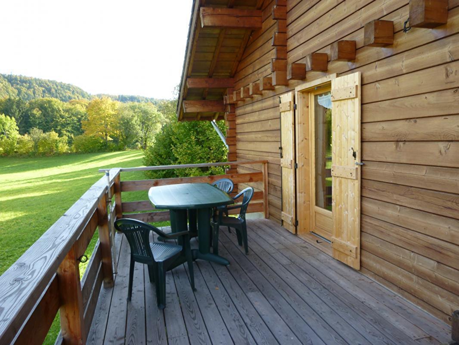 Chalet indépendant situé au coeur du Haut Jura, au pied des pistes de ski de fond et à deux pas de la cité médiévale de Nozeroy. Au rez-de-chaussée: vaste pièce à vivre composée d'une cuisine toute équipée, d'une salle à manger et d'un coin salon avec poêle à bois. Accès direct sur la grande terrasse offrant une magnifique vue sur la nature environnante. Ch1: 1 lit 2 pl, salle d'eau. A l'étage: ch2: 1 lit 2 pl, et mezzanine avec 4 lits 1 pl. Cour et jardin privés non clos, salon de jardin, barbecue. Chauffage électrique (entre 4 et 7€/jour suivant la saison) et bois (vendu 7€/jour x 6 jours). Sur demande: chaise bébé. Une caution de 350€ sera demandée dont 150€ pour le ménage.