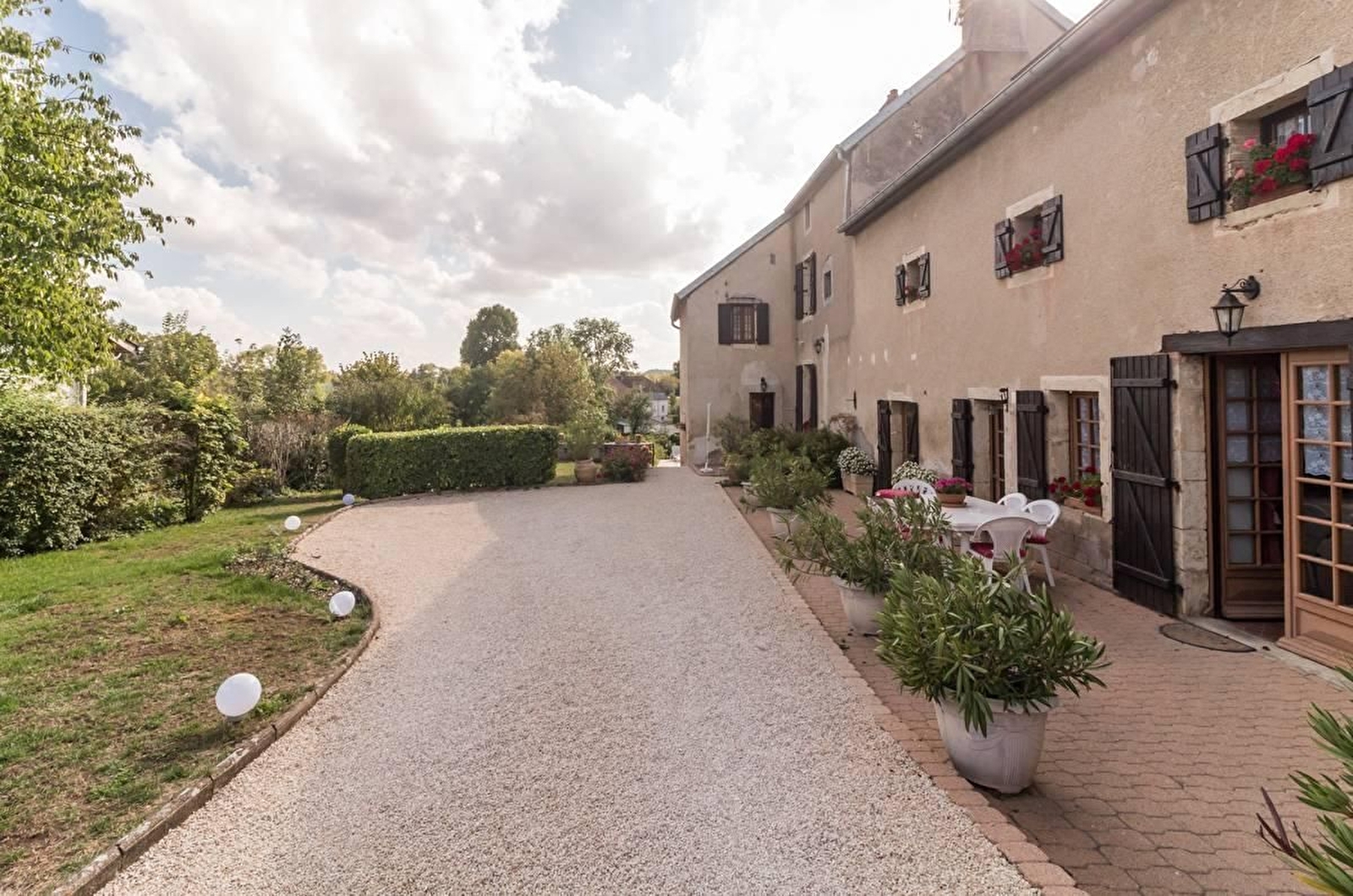 Cour commune fermée 1600 m². Terrasse. Piscine chauffée (8 x 4 m) commune avec les propriétaires et l'autre gîte avec accès sécurisé, ouverte de mai à septembre. Les animaux ne sont pas admis.