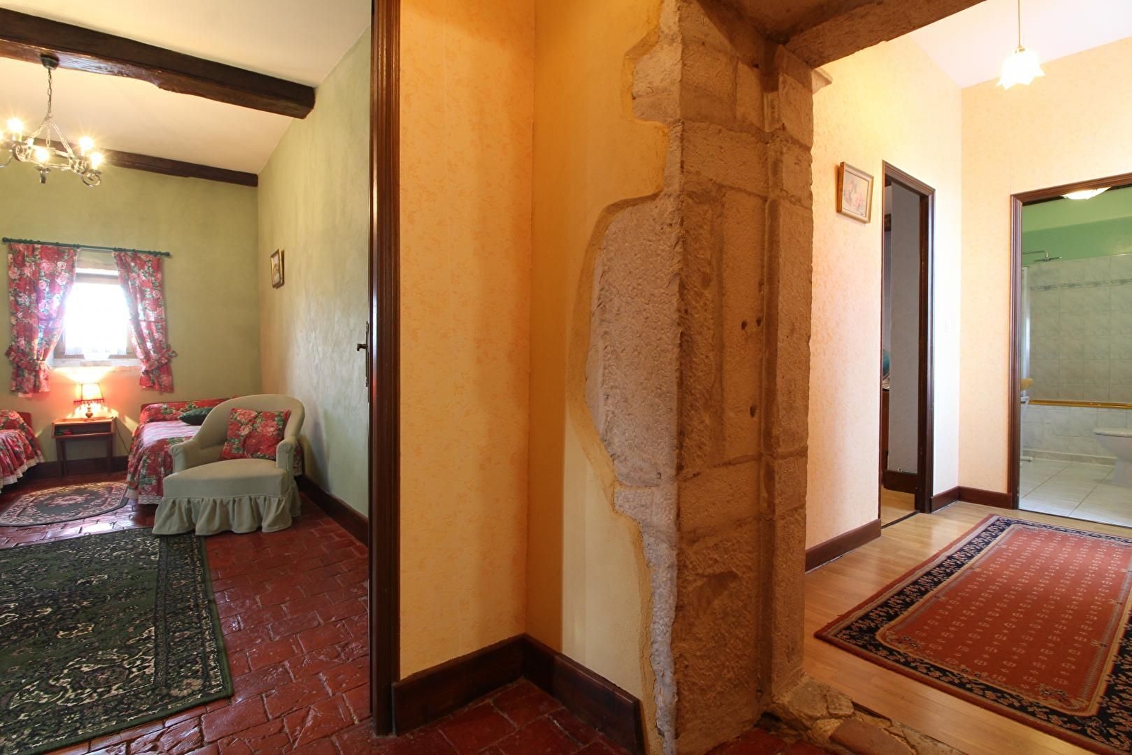 Accès à l'étage par un escalier en colimaçon. A l'étage : Coin salon. 2 chambres, une avec 1 lit en 140 et 1 lit en 90, la seconde avec 2 lits en 90. 1 lit enfant moins de 3 ans. Salle de bains, Wc.