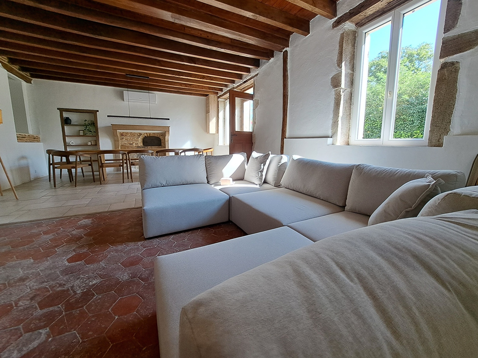 Venez découvrir notre spacieuse ferme de 200 m² entièrement climatisée et rénovée en conservant le charme de l’ancien, accentué par une touche de modernité.