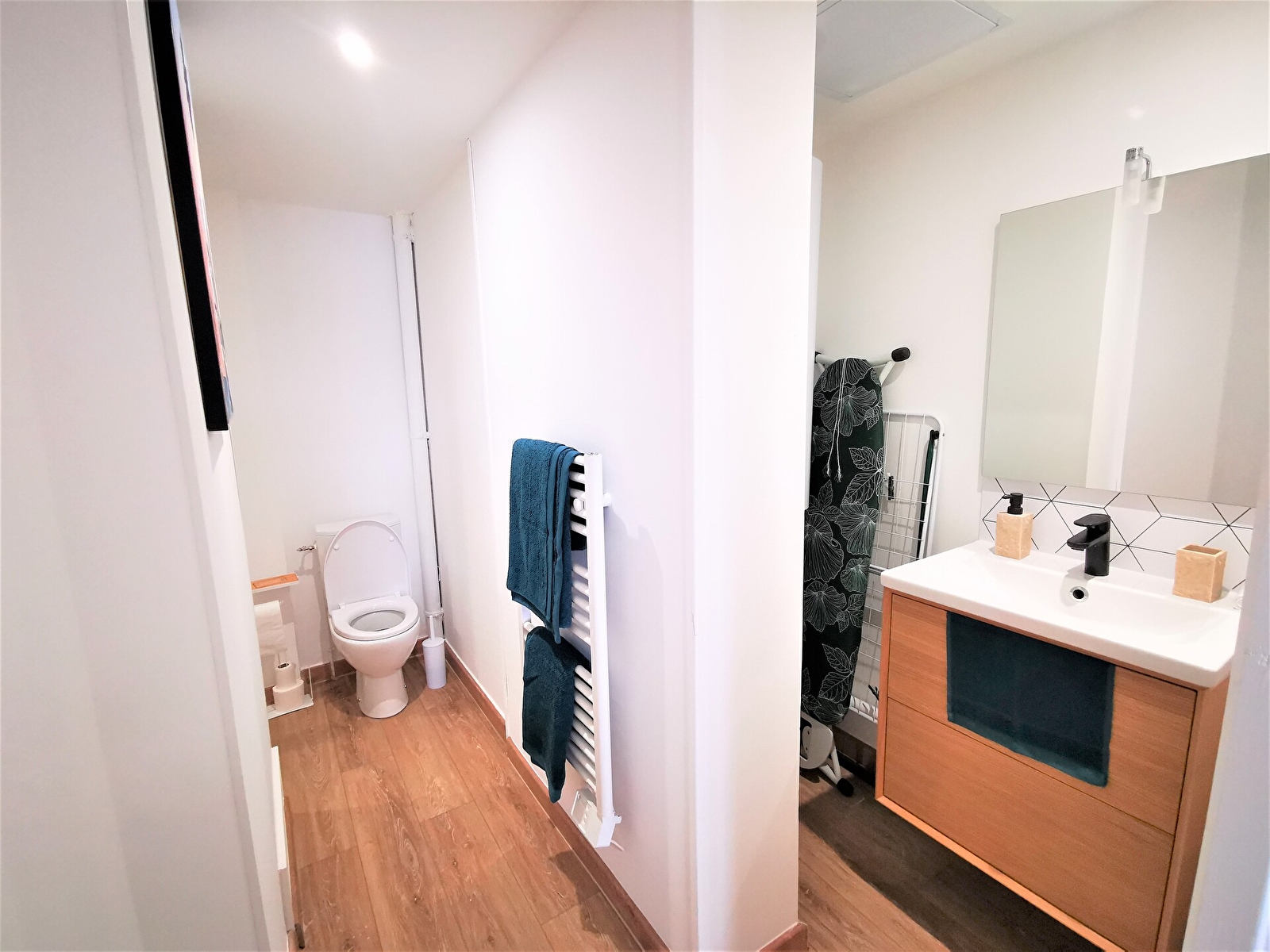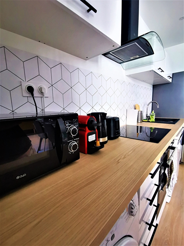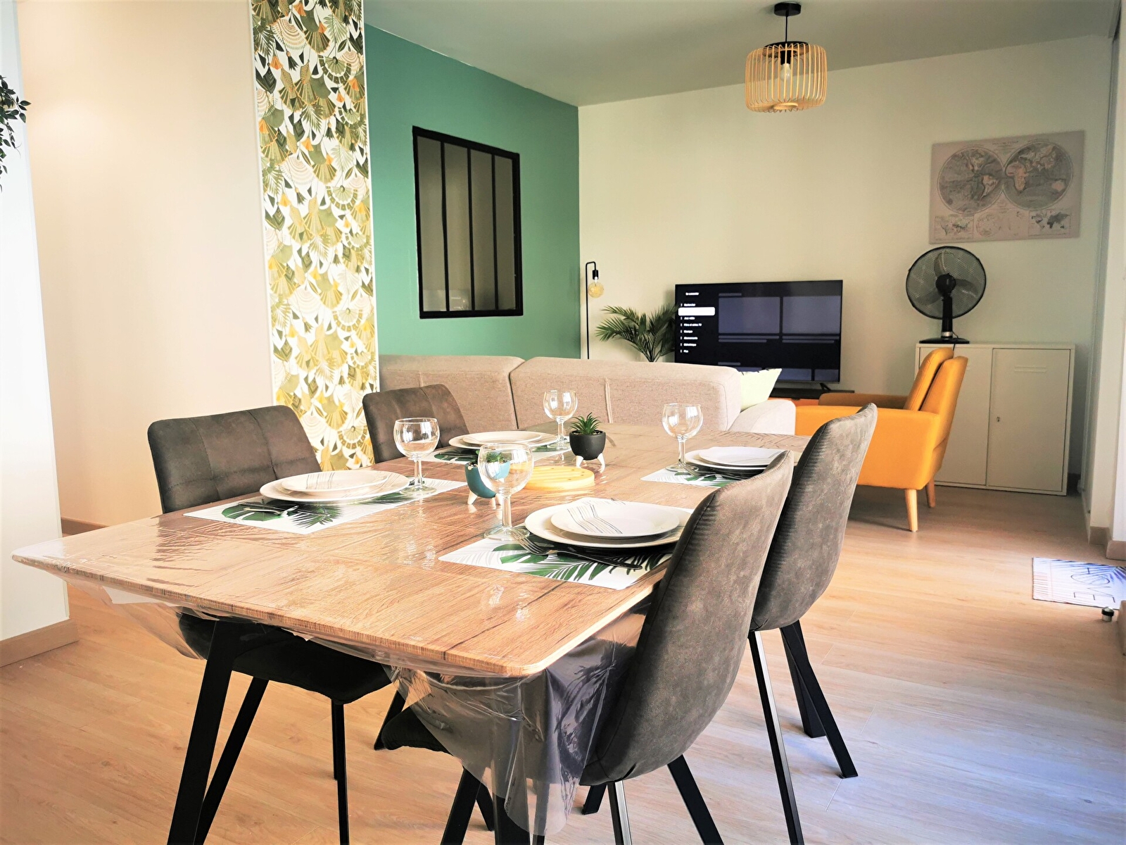 Appartement de 55 m², esprit jungle et nature, au rez-de-chaussée (3 marches d'escalier) avec son entrée privée, à 2 min à pied du centre-ville, calme et tout équipé. TV connectée, wifi haut débit, cuisine entièrement équipée. Lave-linge séchant, lave-vaisselle, machine à café Nespresso, café et thé à disposition. 2 chambres composées chacune d'un lit de 140x190 cm. Salle de bain de standing avec douche, WC. Stationnement facile et gratuit à proximité. Gare TER à 5 min à pied. Linge de lit compris sauf linge de toilette et tapis de bain.