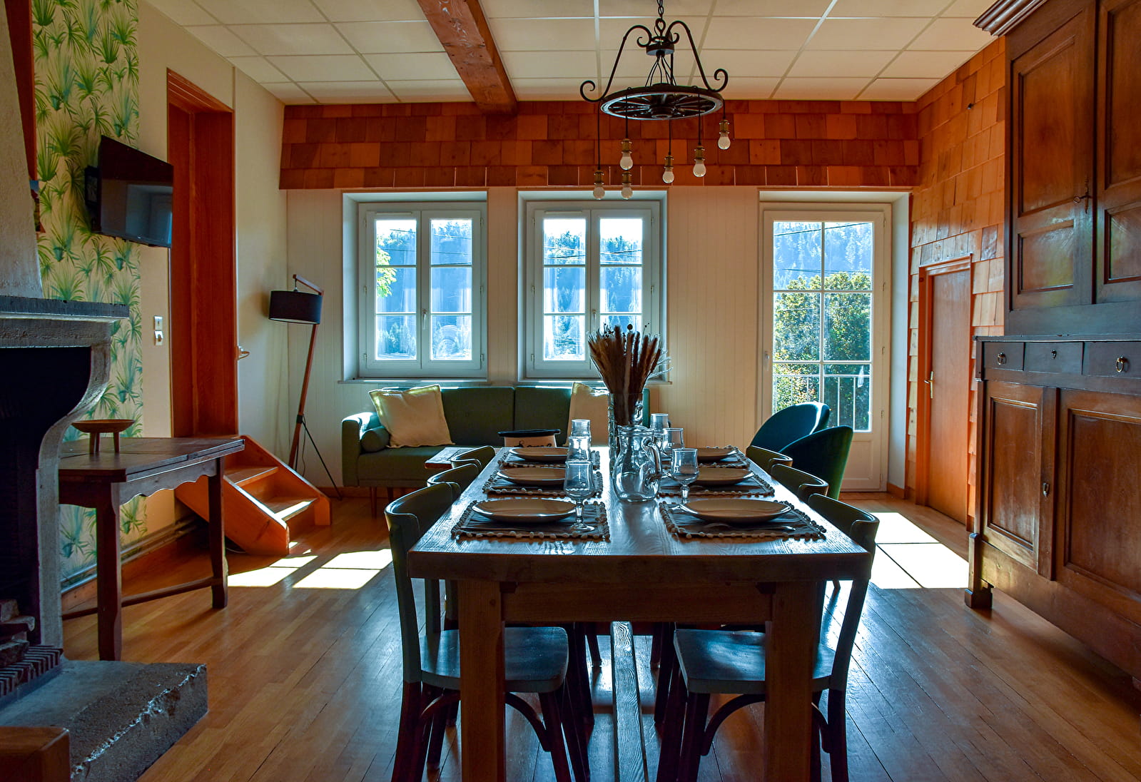 A Prénovel (Nanchez) dans le Haut Jura, à proximité des sentiers de randonnée et pistes de ski/raquettes, location de vacances "Tavaillon" : appartement de 85m² pour 6 personnes à l'étage d'une maison.