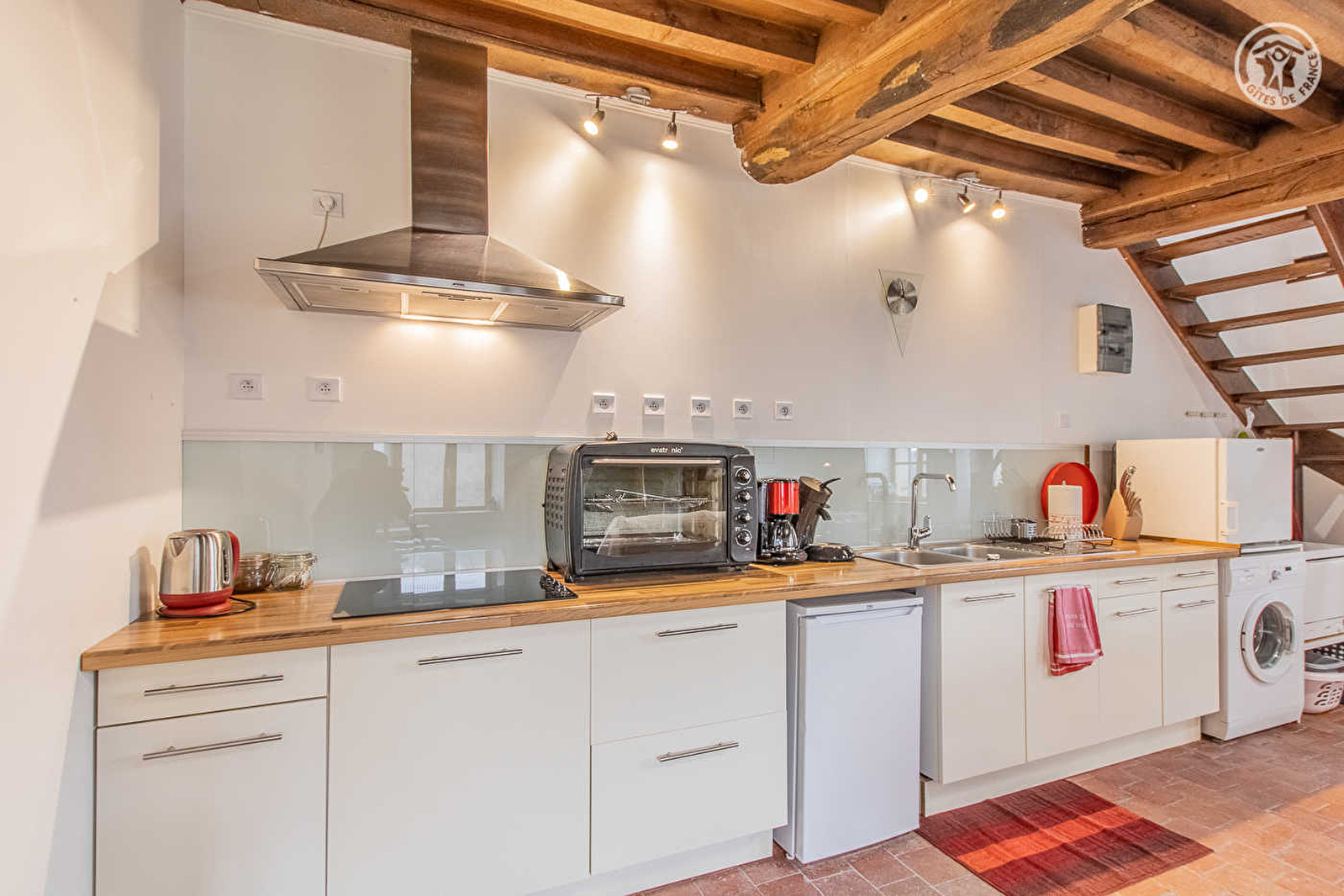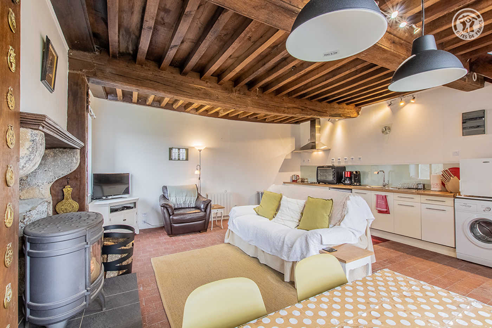 Composition : Maison individuelle. Wifi. Chauffage électrique + poêle à bois. Rdc surélevé (4 marches) : séjour-cuisine-salon. 1er étage : chambre (lit 2 p. 160x200cm), salle d'eau (douche multijets/Wc). Parking privé ou public gratuit devant le gîte (selon saison). Jardin clos privé (2000m²). Supérette 7 km. Gare 23 km.