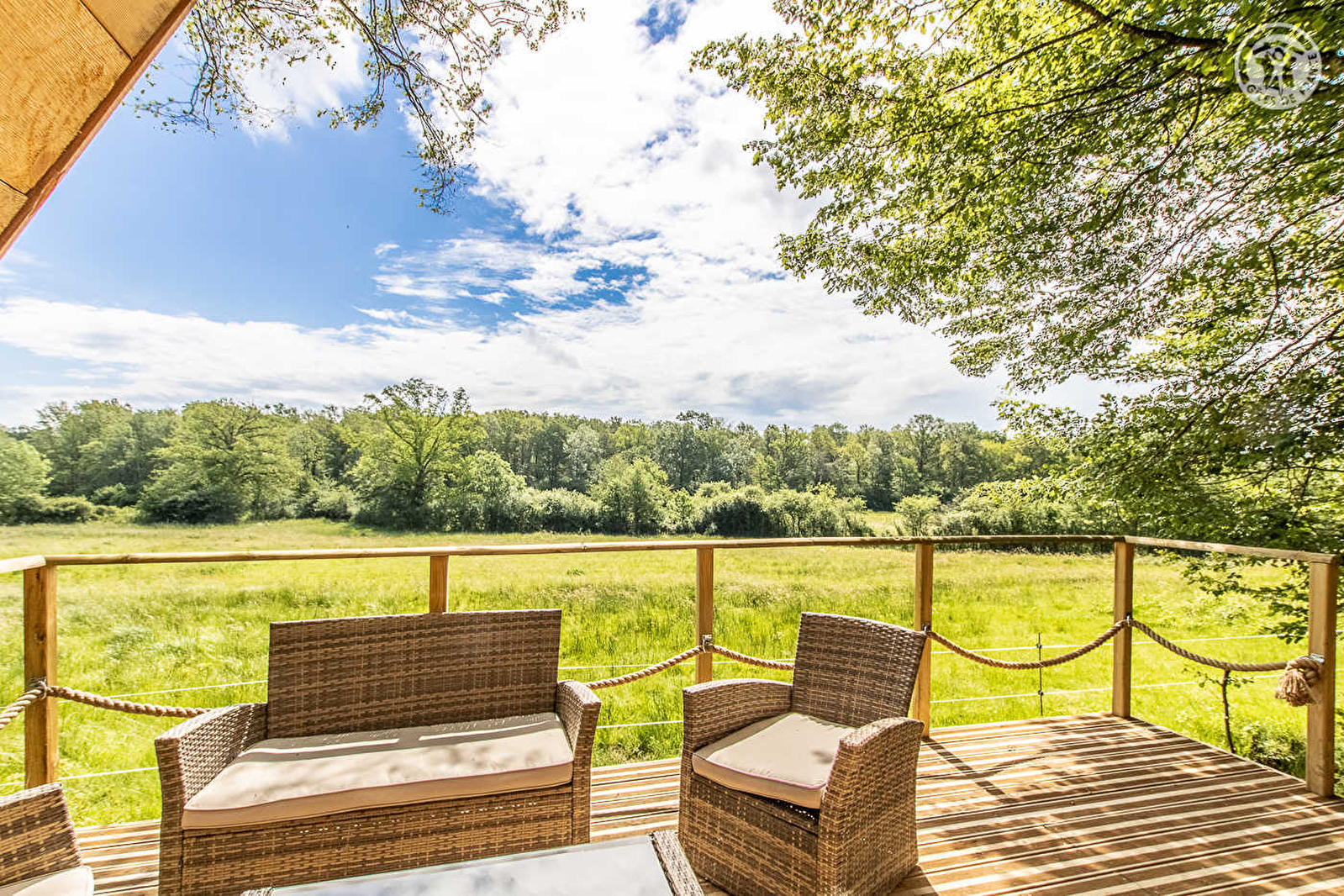 Gérants de la "Ferme des Animaux des Petits Bois" sise à 12 km (ferme d'exposition avec plus d'une centaine d'espèces d'animaux domestiques & activités pour toute la famille), Sonia & Jean-Baptiste vous accueillent au sein d'une insolite charmante cabane "tipi" - composée de 2 modules communiquant, par un original tunnel "boyau" pour le plaisir des aventuriers ! - blottie en pleine forêt en lisière d'une bucolique prairie verdoyante où pâturent leurs chevaux. Cadre absolument magique & enchanteur, lové "sous les arbres "au creux d'un sublime écrin préservé de nature & verdure (le privilège de pouvoir observer la faune sauvage). Propriété privée de 30 ha proposant une vaste forêt (parfaitement entretenue avec chemins de promenade & tyrolienne), un étang de pêche de 1 ha ("no-kill"), une rivière poissonneuse, un espace "bien-être"en accès payant (spa & sauna) et une aire de jeux enfants (tobogan/escalade/cabane). Très bon confort. Chaleureux cachet boisé. Ambiance zen & douce. Agréable balcon-terrasse panoramique exposé, offrant une superbe vue dégagée. Magnifique paysage. Large terrain naturel "forestier" privé (sans vis-à-vis).