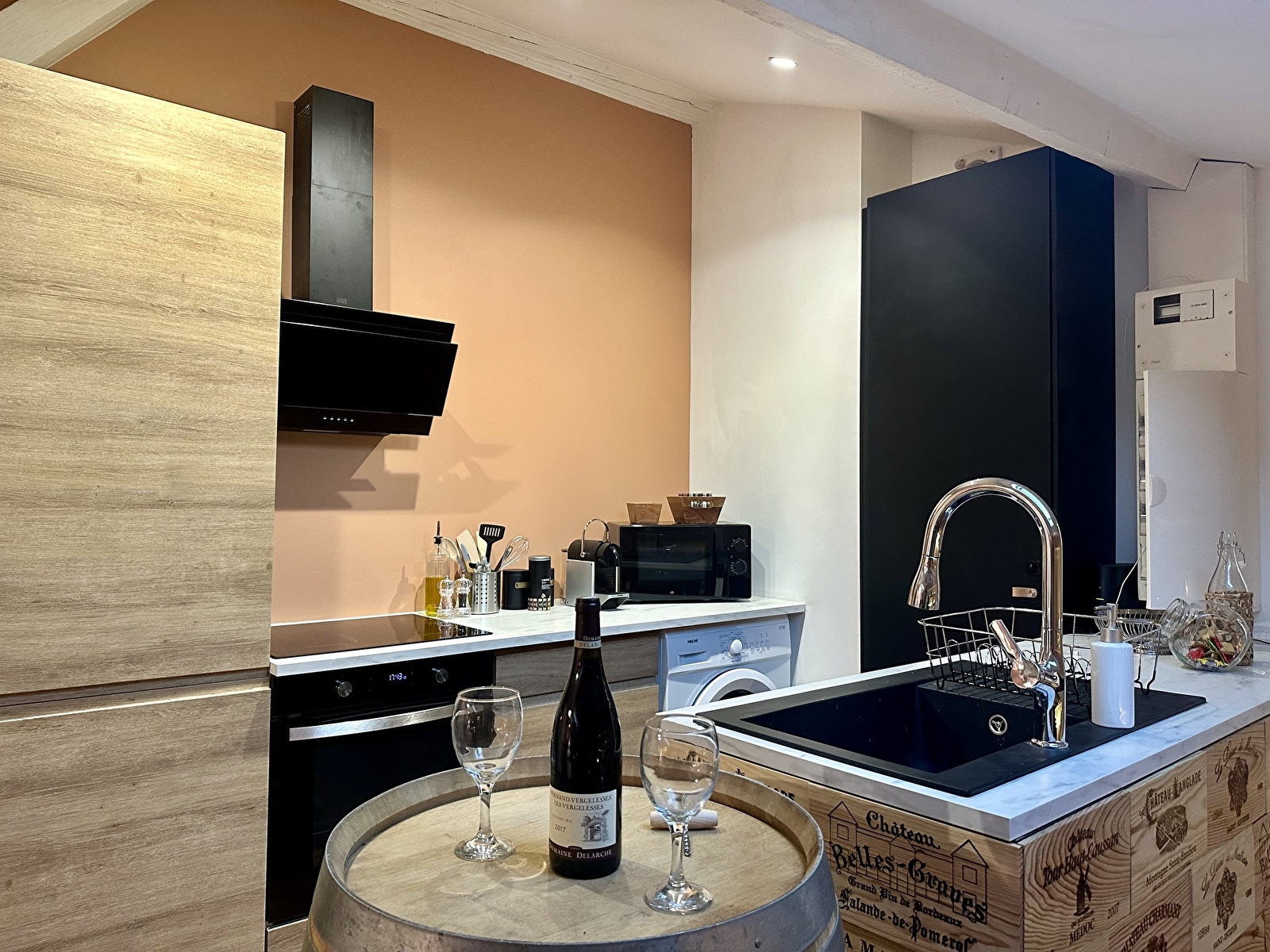 Café, thé, sucre, sel, poivre, huile d'olive et liquide vaisselle sont mis à votre disposition, tout comme savon, gel douche et capsules de lessive.