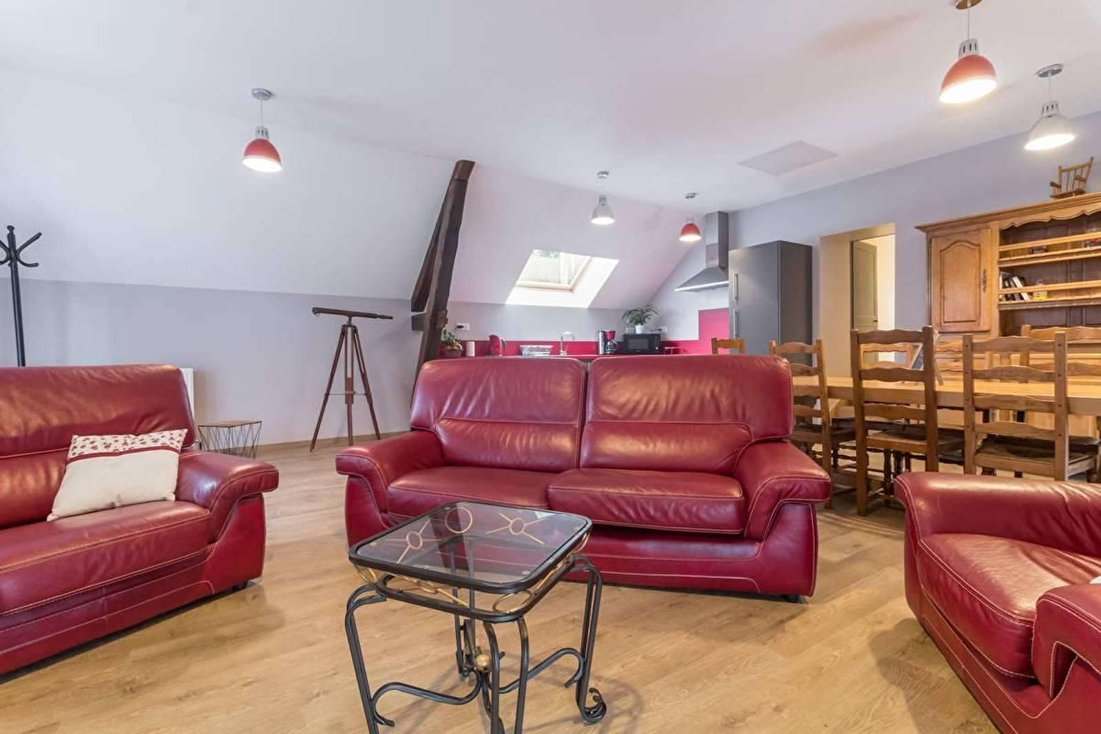 A l'étage, on trouve une chambre avec un lit 160 , une chambre avec 2 lits 90 et une chambre avec 3 lits 90 dont 2 jumelables. Salle de bains avec WC. Le gîte 6 est plus contemporain. Il se situe au 2ème étage dans l'ancien grenier et dispose d'une entrée indépendante accessible par un escalier extérieur avec une belle terrasse privative sur l'étang.