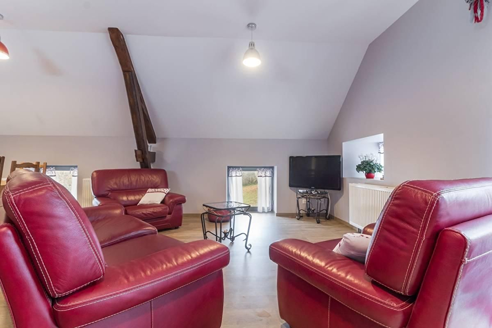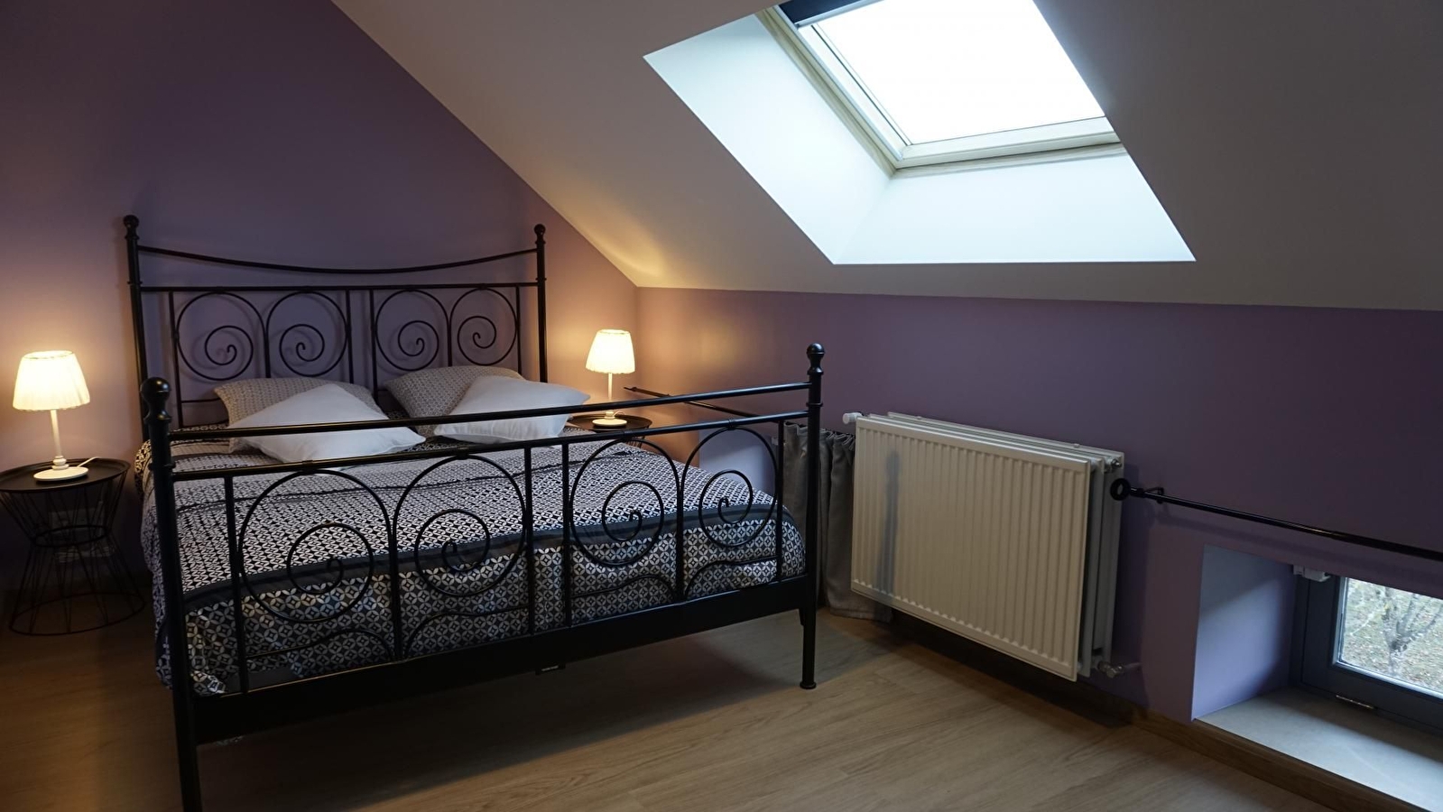 Le gîte 6 est la partie la plus contemporaine du moulin. Il se situe dans l'ancien grenier et dispose d'une entrée indépendante accessible par un escalier extérieur avec une belle terrasse privative sur l'étang.