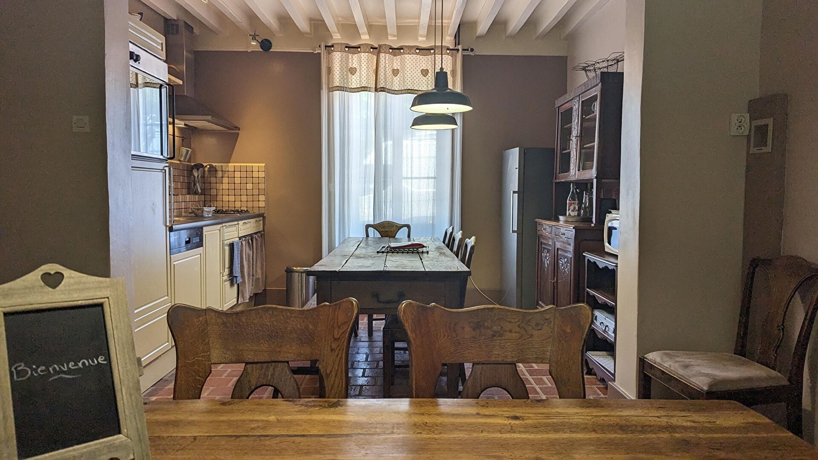 Le gîte 9 est la partie la plus authentique de la bâtisse avec ses tomettes, ses plafonds à la française, sa cheminée et son sol d'origine en carreaux de ciments.