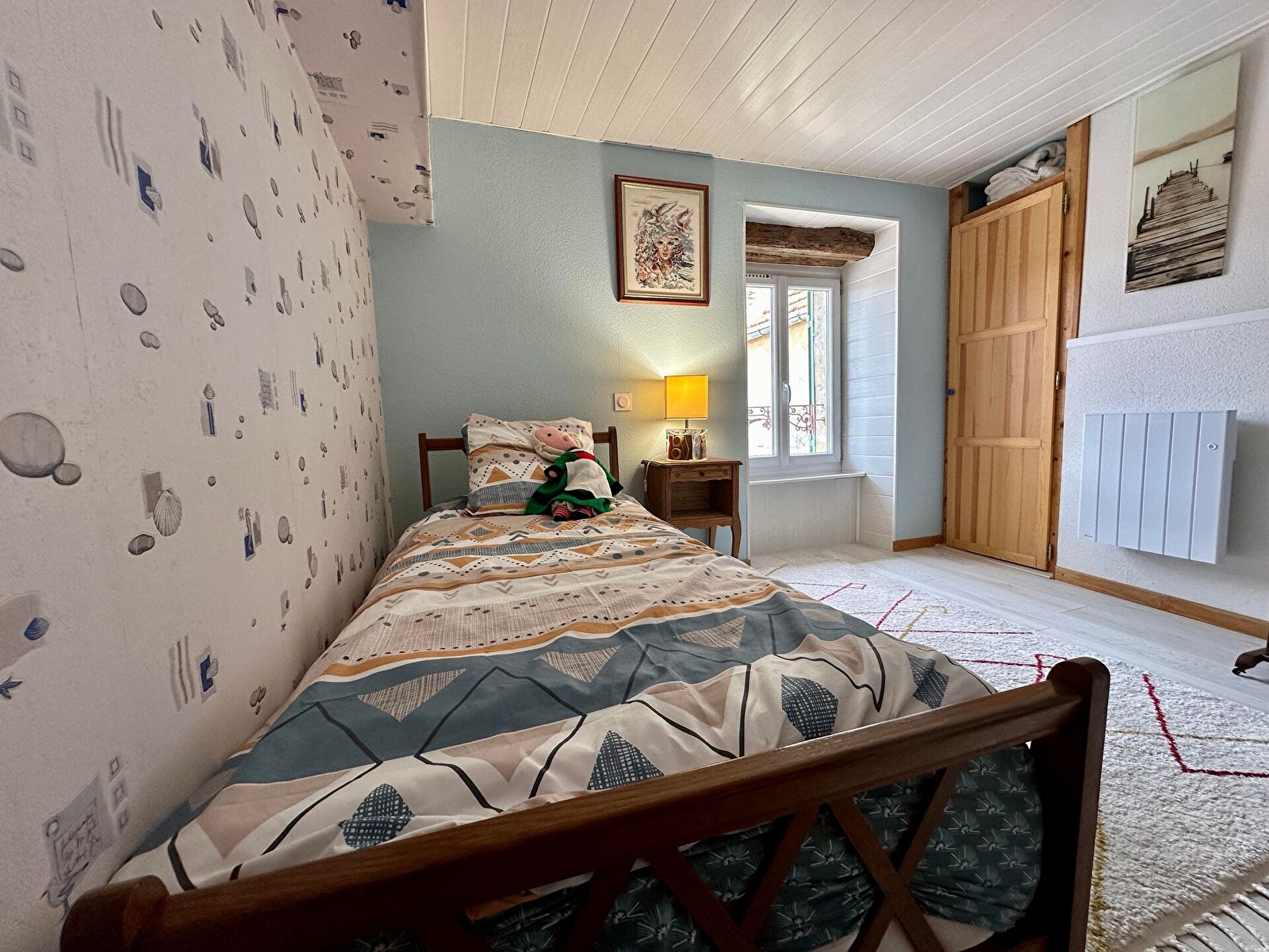 A l’étage : 2 chambres 1 personne (chacune avec un lit simple), 2 chambres pour 2 personnes (lits 140x190cm) et une cinquième chambre pour 3 personnes (1 lit 140x190cm et 1 lit 90x190cm)