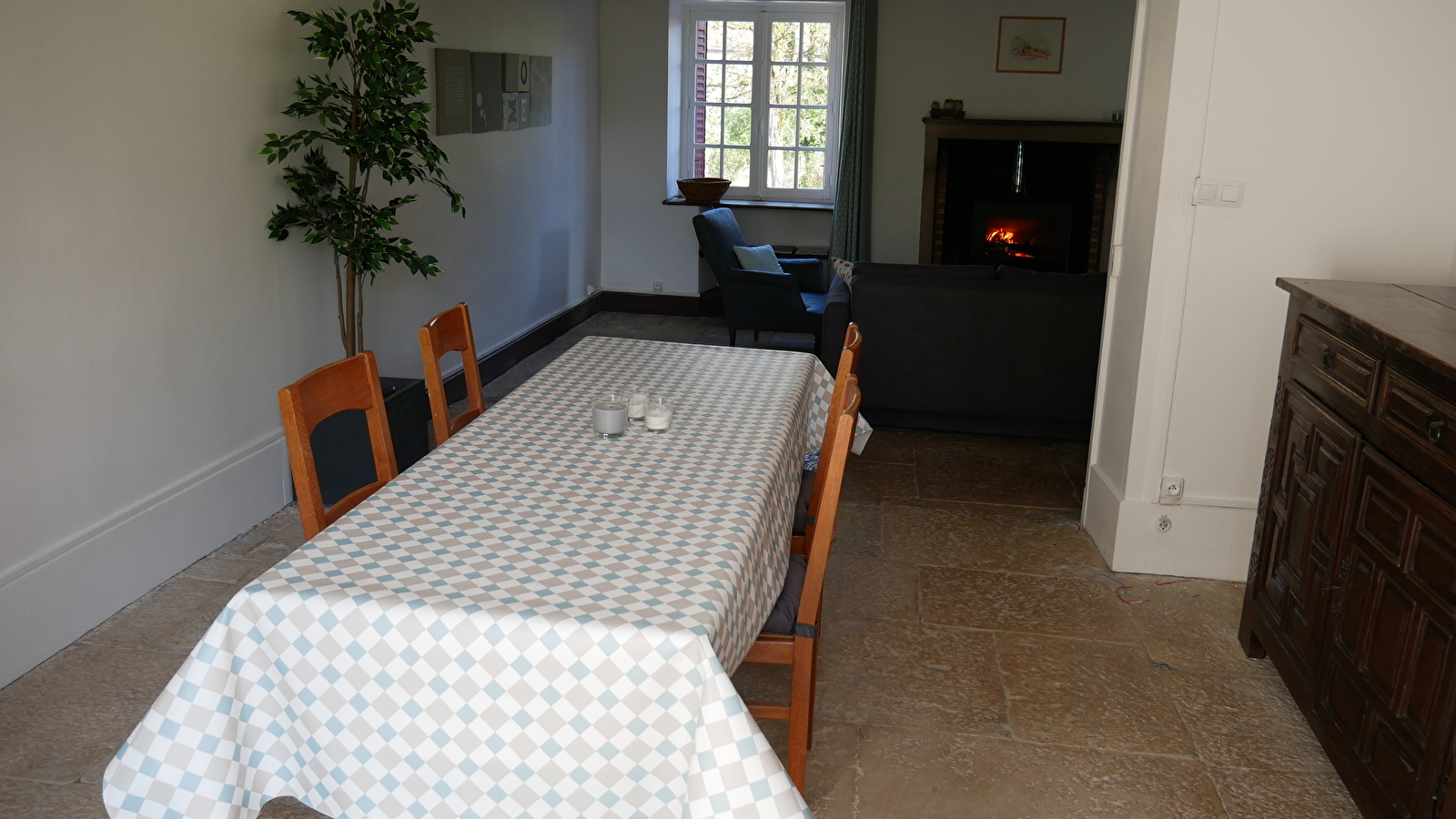 Le logement est composé de deux espaces: au rez-de-chaussée: Cuisine, et grand salon / salle à manger avec poêle à bois, télé et wifi.