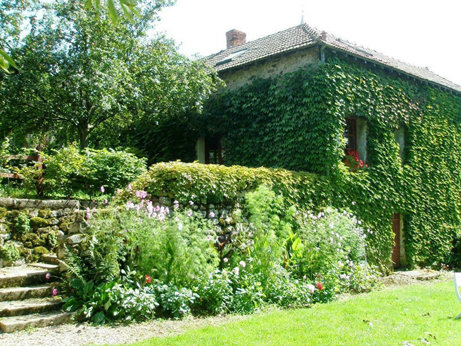 Charmant authentique "bucher" de caractère datant du XVIIIème siècle, intégralement restauré & chargé d'histoire (jadis liée à une "maison forte" féodale qui occupait les lieux), voisinant l'élégante demeure de maître du propriétaire, blottie sur une exceptionnelle propriété naturelle de 50 ha riche de pâtures accueillant vaches & chevaux et d'un bucolique étang de pêche privé de 1 ha en "no-kill" (carpes, brochets, gardons…). Absolue tranquillité en pleine campagne charolaise vallonnée, niché au sein d'un mini hameau rural, agricole & résidentiel, perché en promontoire & "belvédère" panoramique sur une douce colline, adossée à une vaste forêt sauvage, offrant une superbe vue dégagée. Apaisant écrin champêtre & naturel préservé, dominant un sublime vallon de bocage à deux pas d'un rare espace naturel classé en "Zone Natura 2000" pour la protection de la Cistude d'Europe, petite tortue d'eau douce. Magnifiques panoramas & paysages. Littéral havre de paix & repos. Véritable petit coin de "paradis vert" pour petits & grands, proche du village (église romane du XIIe). Gîte de bon confort. Chaleureux cachet campagnard sublimé par les riches traces de la bâtisse d'origine (mur, linteaux & piliers en pierres, poutres, manteau de cheminée…). Ambiance dépaysante d'une ancienne demeure. Originales chambres lovées sous les toits dans un esprit "cabane-chalet". Intimiste & très agréable large jardin clos, arboré & végétalisé (comprenant balançoire & bac à sable), lové telle une clairière en lisière de prairies, au creux d'un littéral paysage rural de "carte postale".