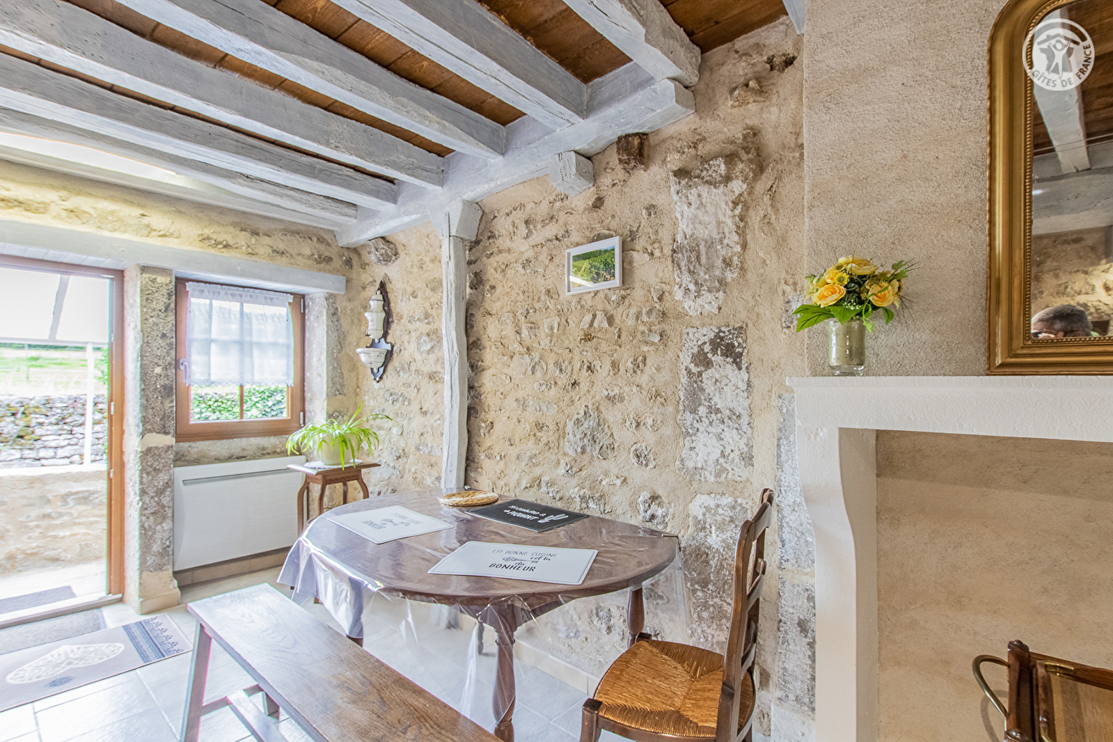 Bernadette & Christian (viticulteur retraité, œnophile passionné exploitant toujours un mini vignoble par plaisir, dont vous pourrez visiter sur place le petit « musée pédagogique » privé dédié au vin & à la vigne), vous accueillent au sein d'une ravissante maison de village du XVIIIe soigneusement restaurée & pétrie d'histoire (ancienne dépendance de l'élégante maison de maître voisine qu'ils occupent), lovée au calme en bordure d'une petite ruelle & lisière de prairie, en plein cœur d'un paisible pittoresque village viticole des Hautes Côtes de Beaune, fondé au XIIIe par les templiers de l'Ordre Hospitalier de Saint-Jean de Jérusalem. Blotti au creux de la douce vallée verdoyante de la Cozanne, au pied de trois monts « belvédères » culminant tous à plus de 500m d'altitude - dont la « Montagne des Trois Croix », espace préservé classé "parc naturel" offrant un exceptionnel panorama à 360° - jouxtant les magnifiques vignobles des Maranges & du Couchois, ce petit bourg « de carte postale » dispose d'un cadre paysagé vallonné littéralement sublime, succession de somptueux coteaux de vignobles, prairies & collines boisées. Cadre champêtre & naturel de toute beauté, apaisant & reposant. Gîte de bon confort. Chaleureux cachet campagnard aux accents contemporains sublimé par une restauration patrimoniale soignée (anciens murs & linteaux en pierres, manteau de cheminée, poutraisons & plafonds d'origine…). Beaucoup de charme & de caractère. Agréable jardinet privatif exposé & ombragé (sis à deux pas). Belle vue dégagée sur la campagne environnante depuis le mini balconnet abrité.