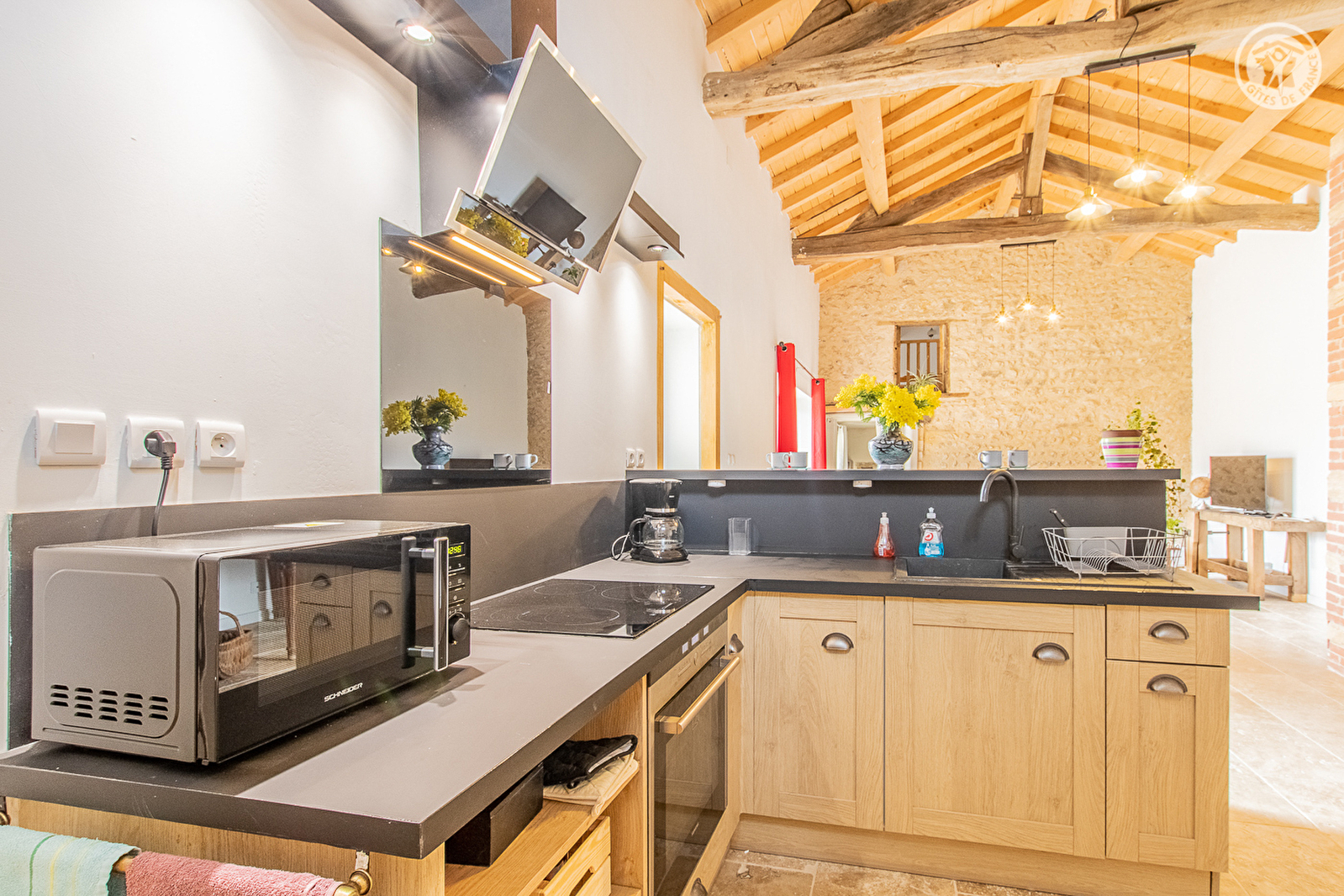 Joëlle & Michel vous accueillent au sein d'une ravissante authentique maison de vignerons du XIXe soigneusement revisitée en confortable villégiature, lovée en pleine campagne au cœur du sublime bocage brionnais avec comme voisines privilégiées les célèbres paisibles vaches charolaises. Calme total au sein d'un petit hameau rural adossé à flanc de colline, sur un plateau sud-ouest bien exposé, au creux d'un magnifique écrin préservé de prairies & forêts. Cadre ultra reposant proche du pittoresque village médiéval de Semur-en- Brionnais, capitale historique du Brionnais doté du prestigieux label "Plus beaux villages de France" & "site clunisien" chargé d'histoire (berceau de Hugues de Semur, futur Saint-Hugues fondateur de l’abbaye de Cluny), riche d'un exceptionnel patrimoine (vestiges du château médiéval du Xème siècle, église & chapelle romanes classées du XIIe, imposant prieuré du XIXe, hôtel de ville du XVIIIe, demeures historiques…) comme d’un splendide cadre paysagé. Spacieux gîte de très bon confort. Belle pièce de vie au beau volume "cathédrale" aménagée en lieu et place de l'historique ancien cuvage. Chaleureux cachet campagnard aux touches contemporaines sublimé par une restauration patrimoniale soignée (manteau de cheminée, murs en pierres, charpentes & poutres… d'origine). Large terrasse abritée prolongée par une terrasse exposée ouverte sur agréable un jardin de 1800m² comprenant un petit potager (légumes disponibles). Grande cour aménagée, littéral terrain de pétanque naturel ! Belle vue dégagée sur la campagne environnante depuis le site.