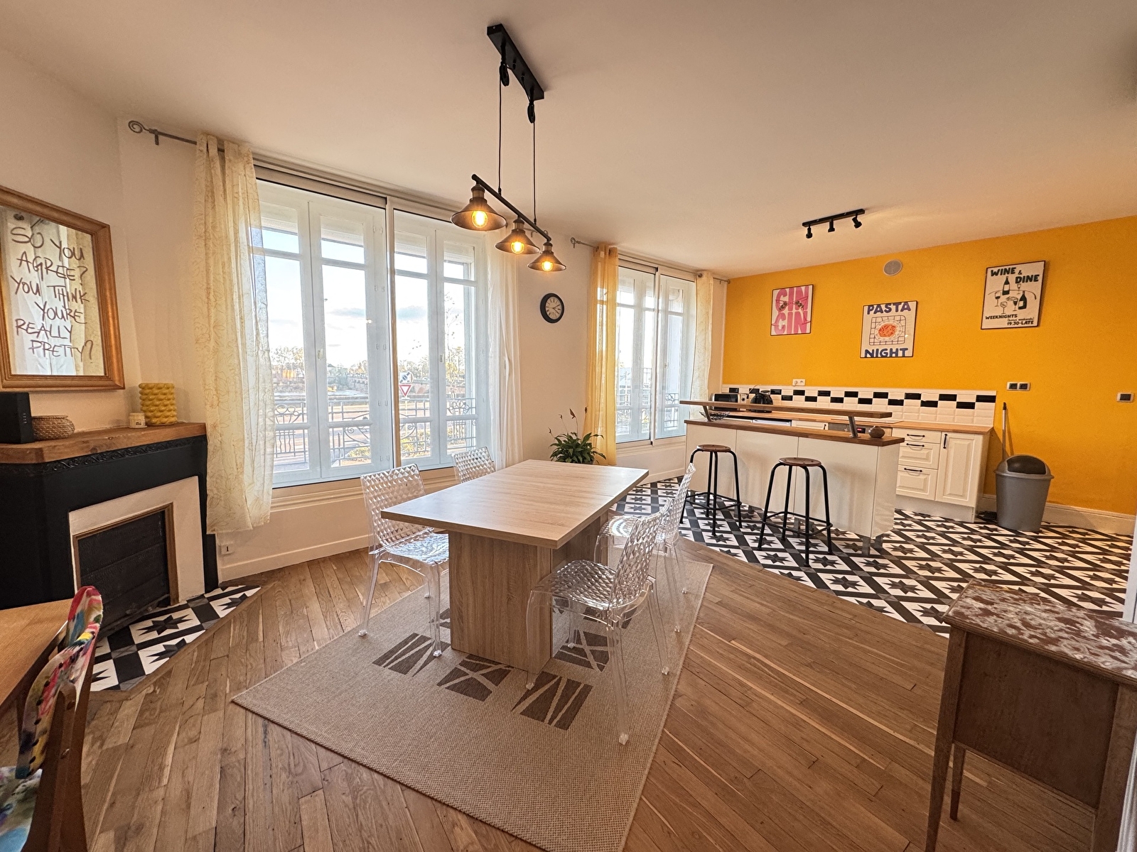 Séjour lumineux et cosy sur les bords de Loire. Appartement au 1er étage alliant charme de l’ancien et confort moderne. Grand séjour lumineux avec cuisine ouverte, coin bureau et chambre séparée. Salle de bain avec WC et canapé convertible pour deux couchages supplémentaires. Wi-Fi rapide, TV connectée, livres et jeux. Vue imprenable sur la Loire, parfaite pour un café ou un verre au coucher du soleil. Idéal pour un déplacement professionnel ou une escapade romantique.