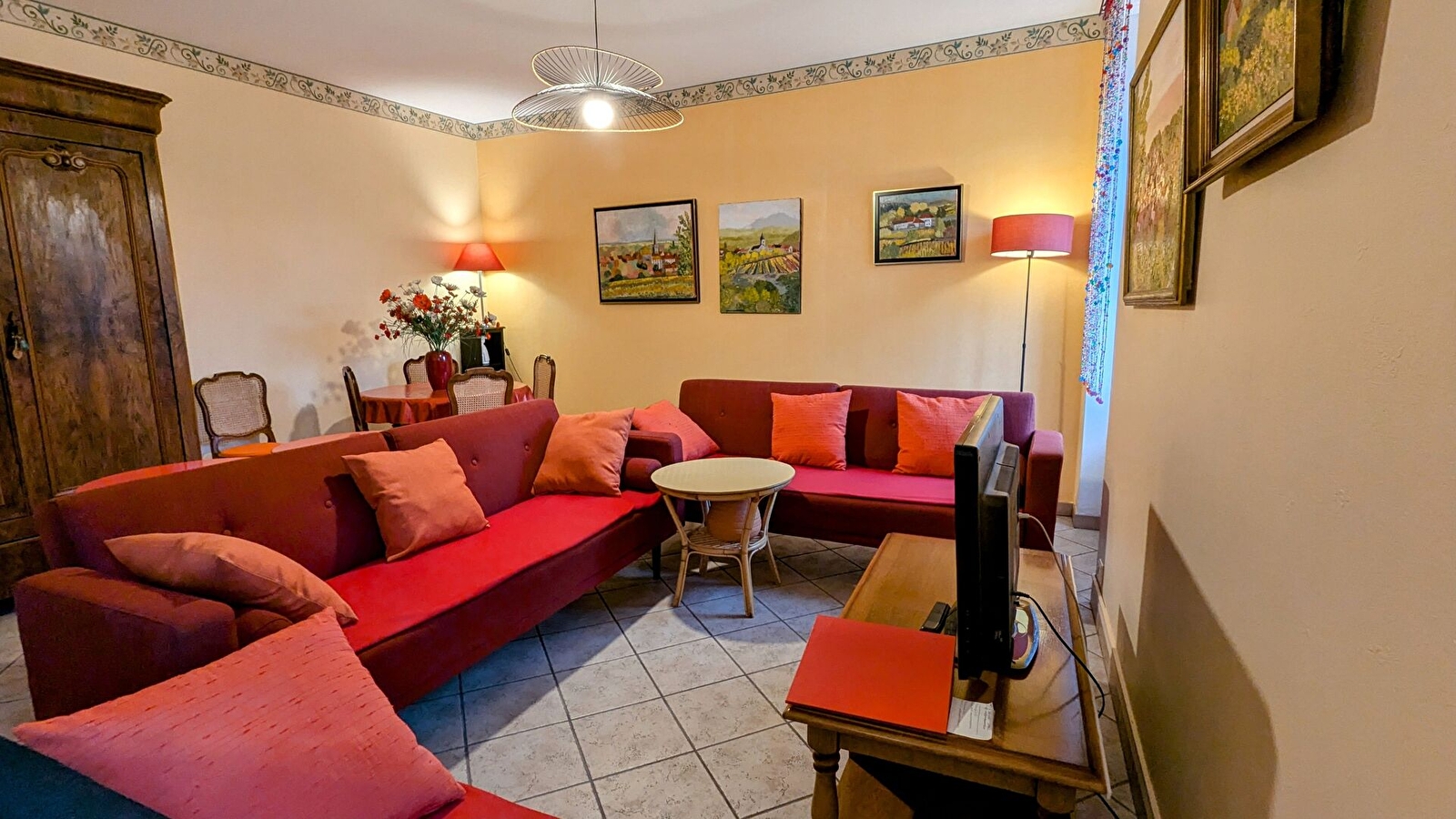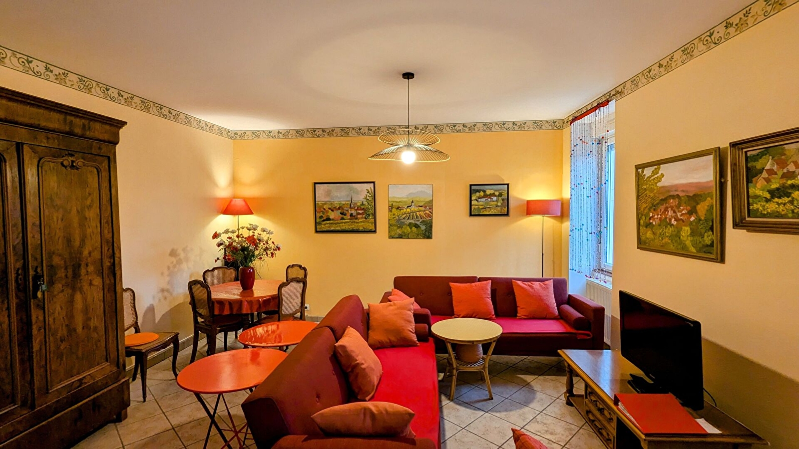 Dans un joli village au cœur du vignoble, réputé pour l'élégance de ses vins, gîte aménagé au dessus d'une cuverie aux 1er et 2ème étages. Cuisine. Grand séjour. 3 chambres, dont 2 avec 2 lits en 90 et 1 avec 1 lit en 90. Salle de bains. 2 WC. Chauffage central (pompe à chaleur). Grande terrasse couverte, vitrée au 1er étage, terrain clos.