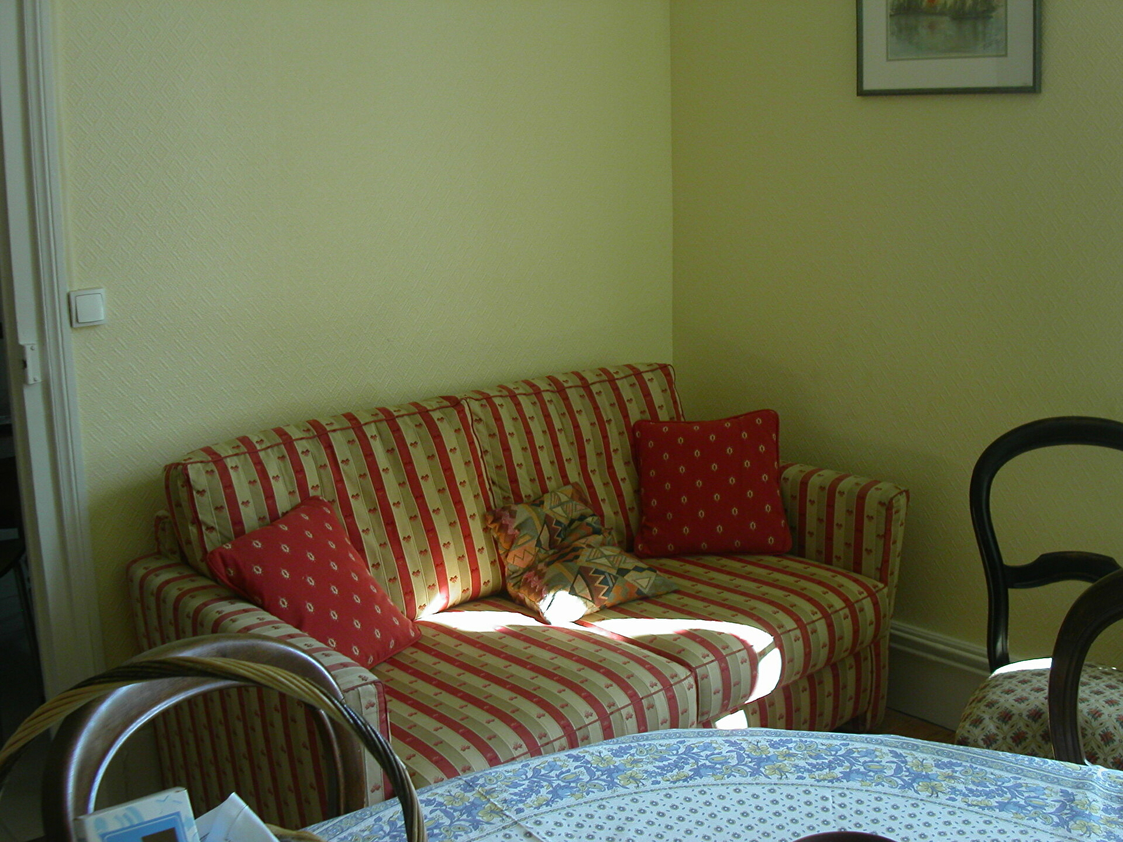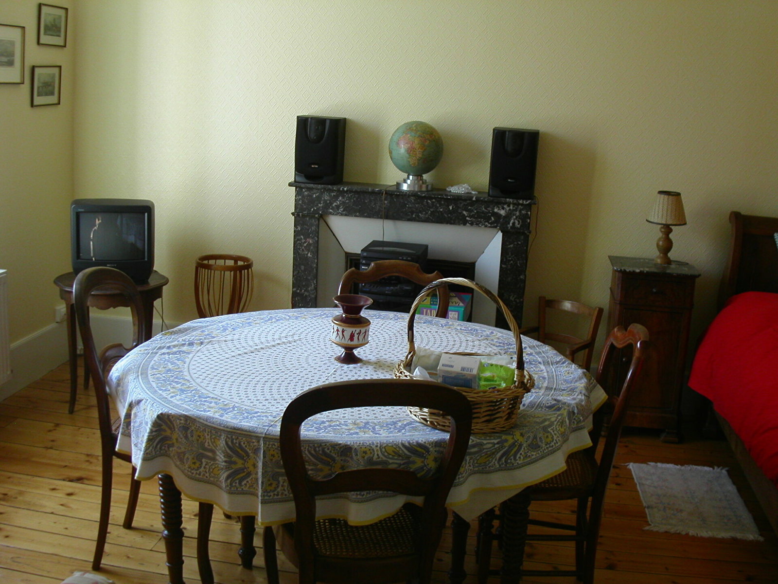 Bel appartement meublé, au premier étage d'une maison ancienne entièrement rénovée, 2 séjours dont 1 avec couchage pour 1 personne, 1 cuisine aménagée tout confort, 1 chambre avec lit 2 personnes, 1 salle de bain avec baignoire et WC. Accès direct dans la cour arrière par un escalier ancien, et possibilité de prendre les repas à l'extérieur dans la petite cour attenante.