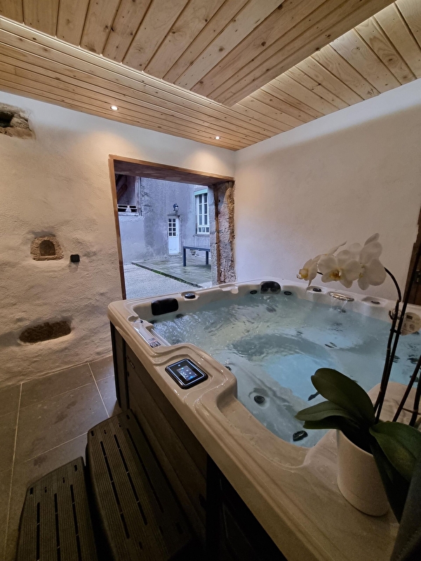 Le gite est doté d'un spa couvert pouvant servir autant l'été que l'hiver. Le spa est en option, il vous sera demandé un forfait de 50 euros pour 2 nuits puis 10 euros par nuit supplémentaire dans la limite de 100€. N'hésitez pas a nous faire savoir si vous souhaitez cette option (règlement auprès des propriétaires).