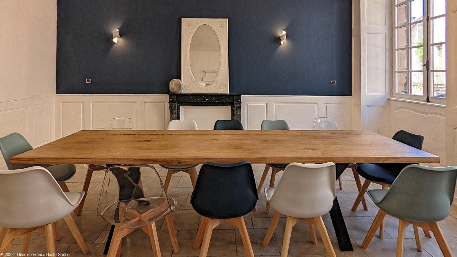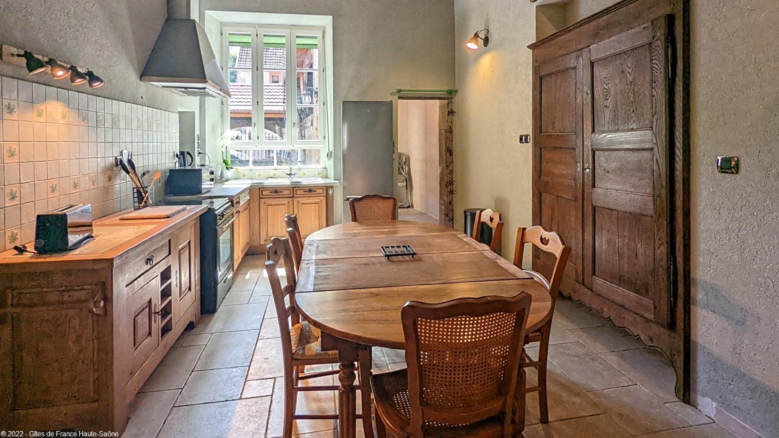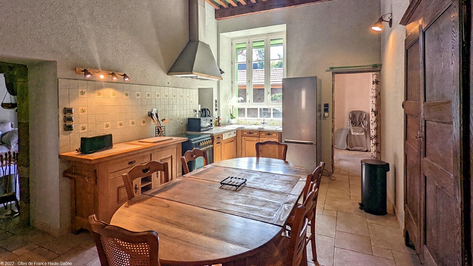 Au cœur du village de Faucogney-et-La-Mer, cité de caractère de Bourgogne Franche-Comté, le gîte L'Échappée vous surprendra par son charme et son authenticité : maison de ville sur deux niveaux. Au rez-de-chaussée : salon avec belle cheminée à foyer ouvert (bois fourni ), télévision écran plat, accès direct à la terrasse, cuisine indépendante toute équipée, grande salle à manger lumineuse, salle de bain avec douche et baignoire, WC indépendant. À l'étage : une chambre avec deux lits de 140 cm en enfilade avec une chambre avec un lit de 140 cm et un lit bébé et salle d'eau attenante avec WC, une grande chambre avec quatre lits de 90 cm, une chambre avec un lit de 140 cm. Chaise haute et baignoire bébé à disposition.