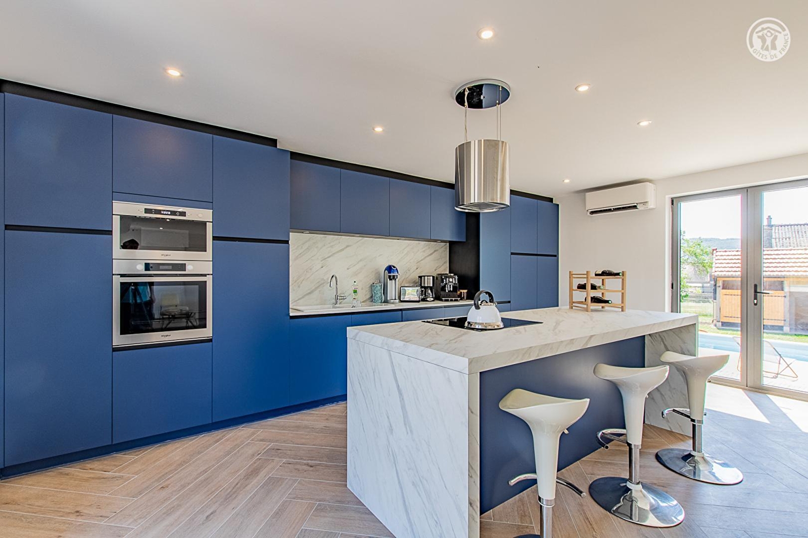 Composition : Maison individuelle. Wifi (fibre). Chauffage PAC. Climatisation. Console PS4. Rdc : séjour-cuisine-salon (alcôve avec canapé lit 2 p. 130x190cm en appoint), salle d'eau (douche/Wc). 1er étage : 3 chambres (lit 2 p. 180x200cm / 4 lits 1 p. 90x200cm en 2 x 2 lits superposés / lit 2 p. 180x200cm) dont une avec sde privative (douche/Wc), Wc indépendants. Terrain clos (800m²) + terrasses + piscine chauffée (5x3m / douche) + spa extérieur (6 places) + terrain pétanque + local vélo + borne recharge voiture électrique + parking privés. Commodités & Supermarché à 5 km. Gîte labellisé "Accueil Vélo" (2 vélos électriques à disposition).