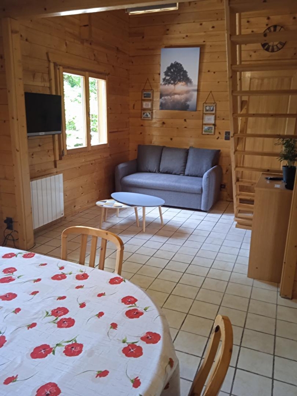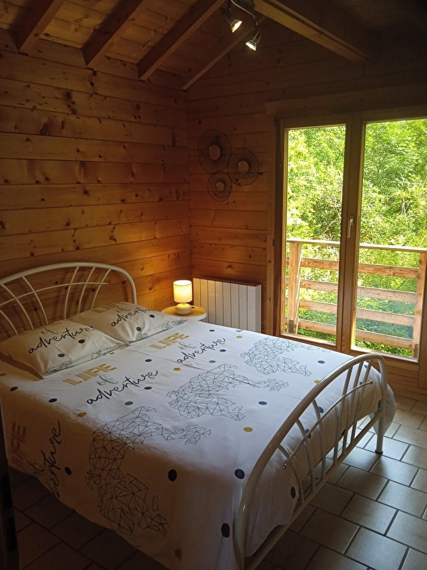 Ce chalet situé au calme se compose d'une pièce de vie avec cuisine équipée, coin salle à manger et espace salon, d'une chambre avec un lit double (140*190),d'une salle d'eau avec douche et d'un WC indépendant. A l'étage, mezzanine avec coin bureau et une chambre avec 2 lits simples. Pour votre plus grand confort, les lits seront faits à votre arrivée, les serviettes sont fournies et le ménage est inclus. Côté extérieur, vous pourrez profiter d'une terrasse avec salon de jardin ,barbecue et transats. Garage pour vélos et motos. Idéalement situé au cœur de la région des lacs, à proximité du lac de Vouglans, vous pourrez également faire de nombreuses randonnées dans les environs.