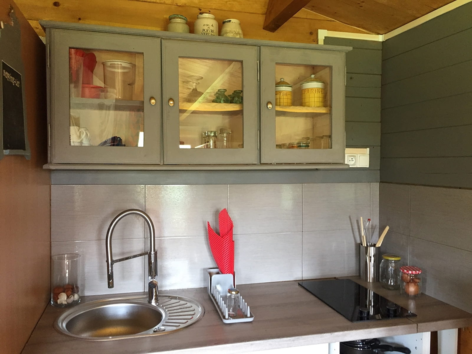 Le logement est équipé d’une salle d'eau séparée avec douche vasque et WC, d’un espace cuisinette comportant une plaque de cuisson vitrocéramique, un four micro-onde multifonction, une cafetière électrique, ainsi qu’une vaisselle assortie et de tous éléments nécessaires pour réaliser de bons petits plats.