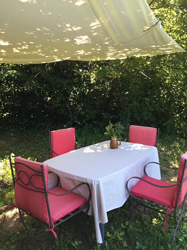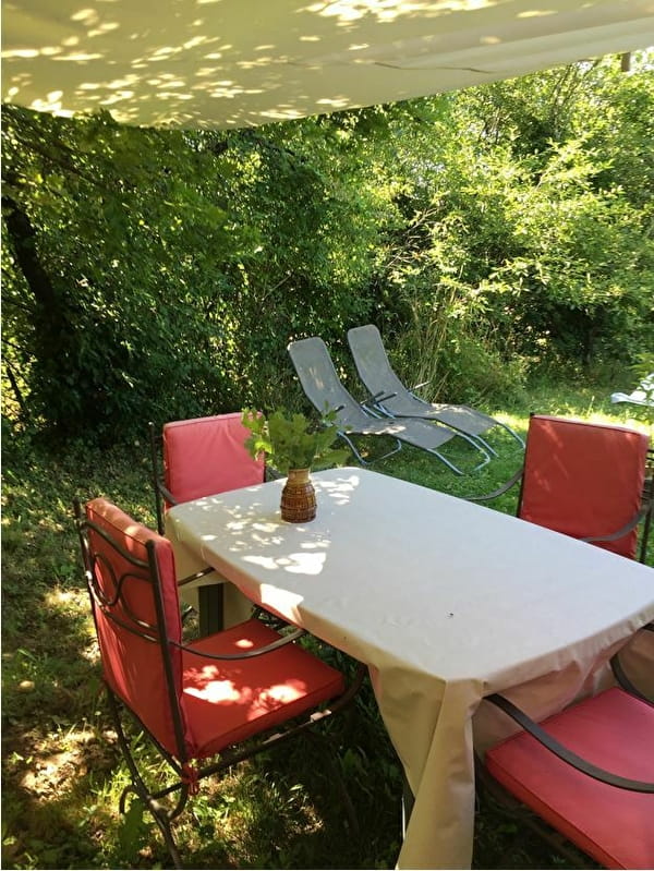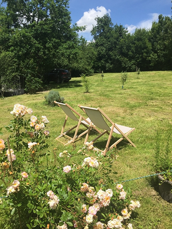 Le jardin de 30m² qui entoure le chalet vous promet des moments de détente et des repas aux sons des oiseaux entourés de la campagne environnante.