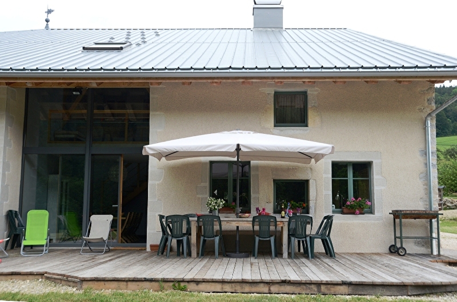 Gîte entièrement rénové dans une partie d'un ancien tuyé, aménagé avec goût et raffinement. Amateur de pierre et de bois, ce gîte saura vous séduire. Au rez de chaussée: grande cuisine ouverte sur salle à manger, 2 espaces salon dont 1 avec poêle à bois, Ch1 : 1 lit 2pl, salle d'eau, wc. A l'étage : mezzanine avec baby foot, 2 chambres avec chacune 1 lit 2pl et salle d'eau et wc privatifs, 2 chambres avec chacune 1 lit 2pl et 1 lit 1pl avec une salle d'eau et wc en commun. Nouveauté : depuis janvier le gîte est équipé d'un sauna. Grand terrain attenant avec ruisseau à truite à 150m. Salon de jardin, barbecue, local à disposition. Chauffage par géothermie avec plancher chauffant. Literie grande dimension.