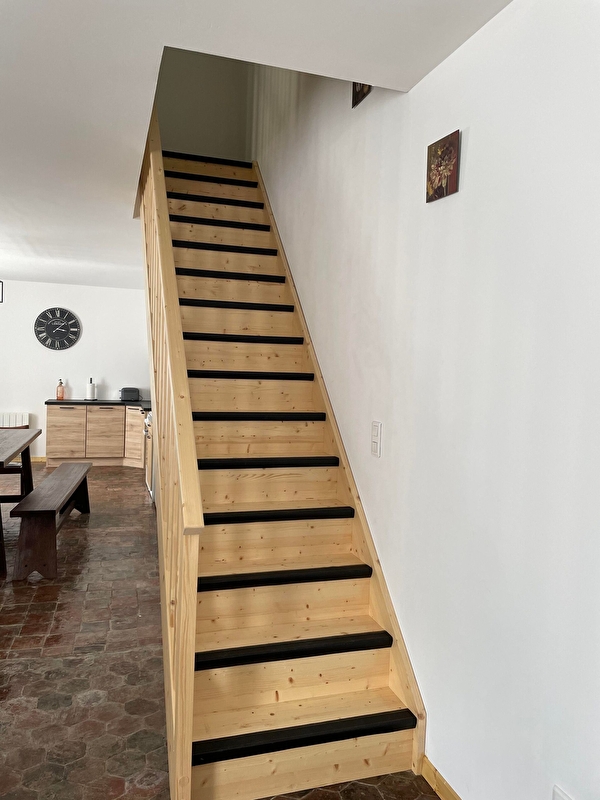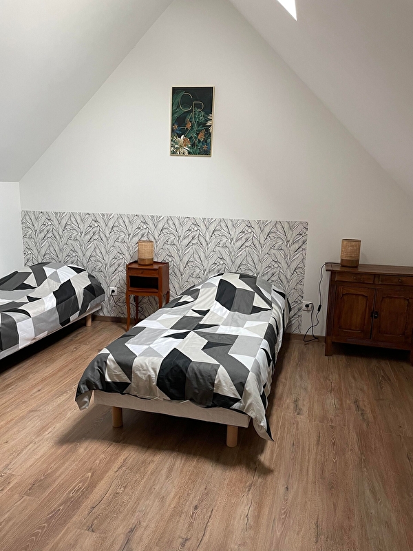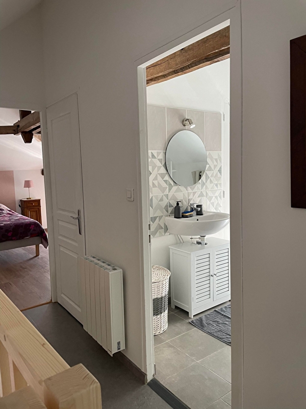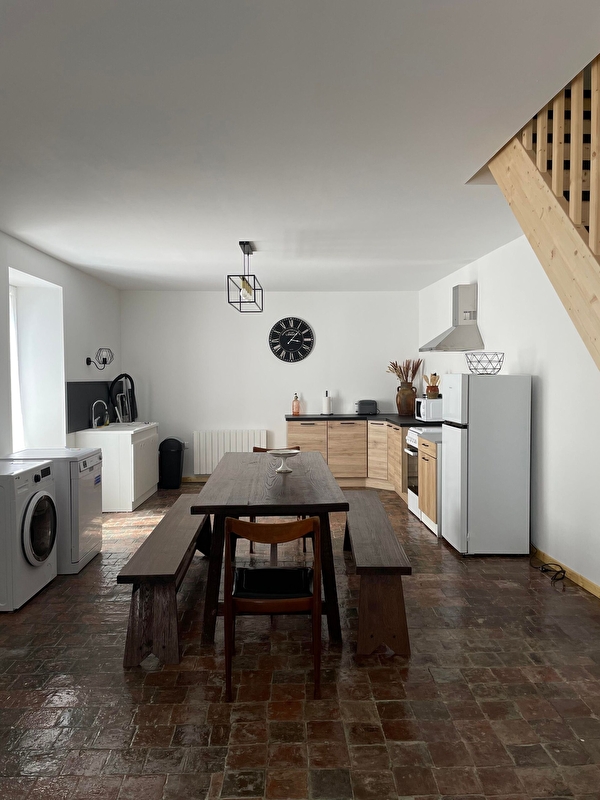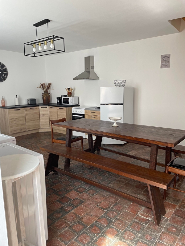 Dans un village calme, maison indépendante entièrement rénovée avec une petite cour privative fermée non attenante à 4 mètres (salon de jardin). Au rez de chaussée : grande pièce à vivre de 48 m2 avec coin cuisine/séjour/salon avec convertible. Au 1er étage : 1 chambre (2 lits 1 personne de 90), 1 chambre (1 lit 160), salle d'eau avec douche à l'italienne et WC séparés.