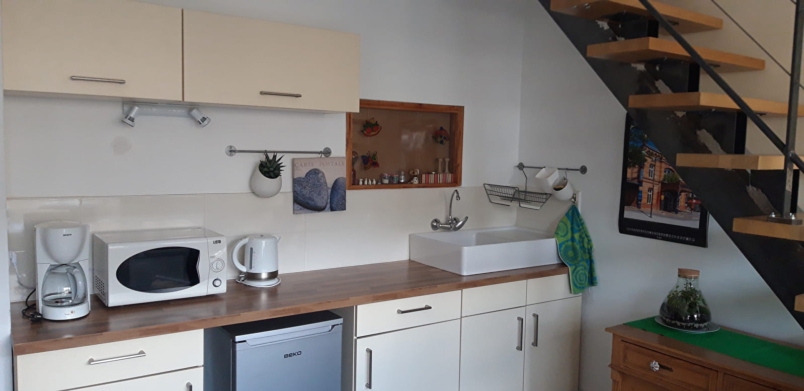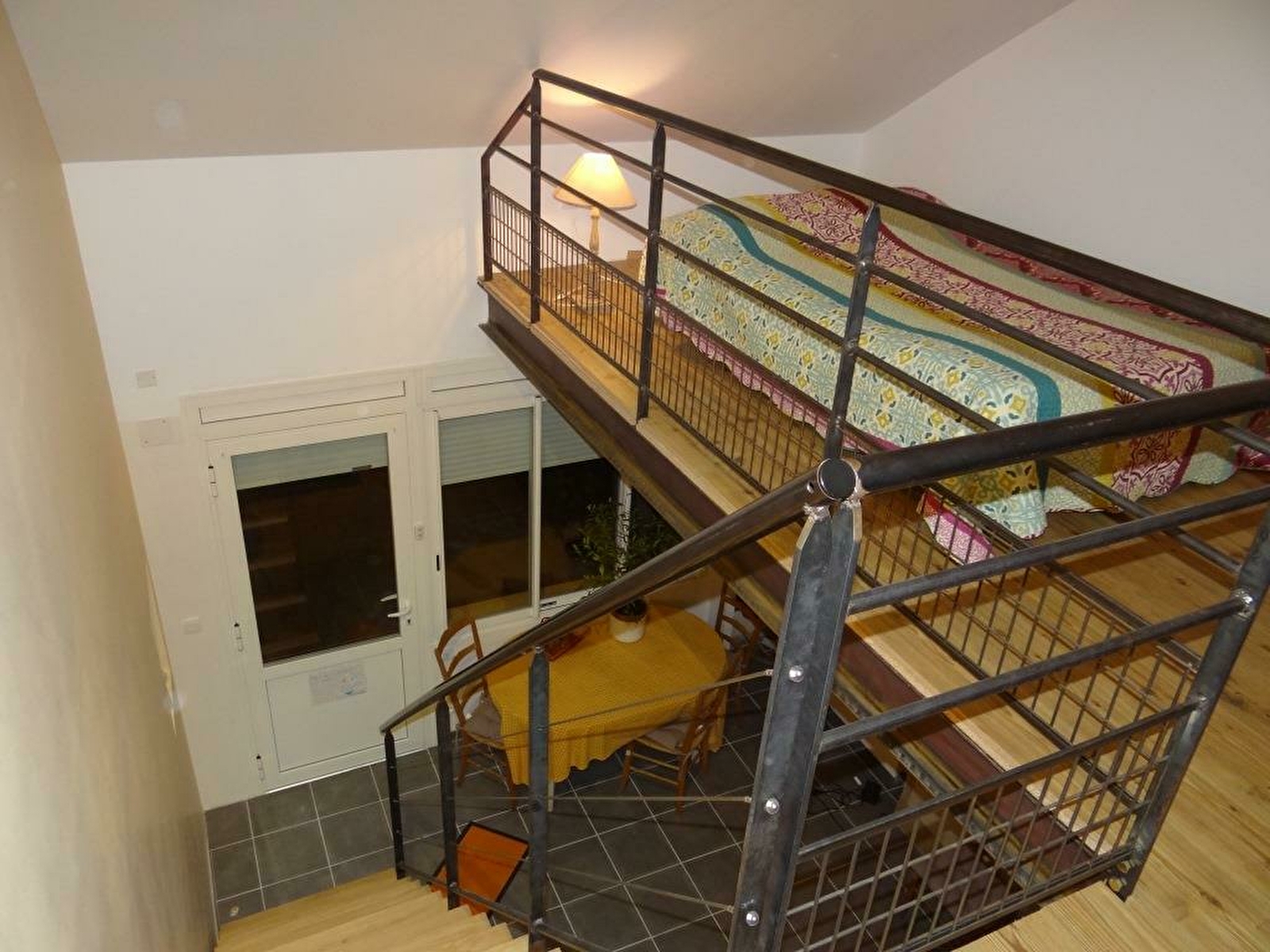 Située à 1200 mètres du centre ville dans une ancienne épicerie, cette location comporte une entrée indépendante, une pièce commune au rez-de-chaussée avec baie vitrée au soleil levant, une charmante mezzanine, une petite chambre et une salle de bain. Terrasse, quartier calme, facilité de parking.