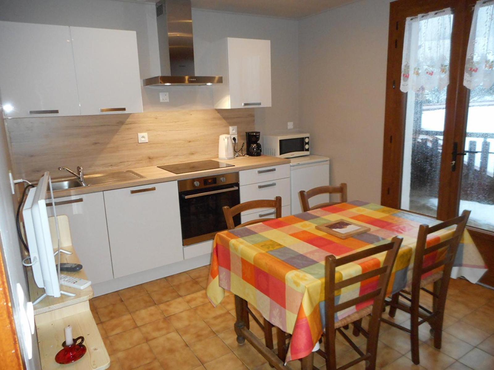 Logement à l'étage d'une maison où se trouvent d'autres appartements. Cuisine entièrement équipée donnant sur un balcon aménagé (barbecue - parasol) salle d'eau avec grande douche, chambre : 1 lit 2 places, 2 lits 1 place, terrain attenant non clos, salon de jardin. Chauffage central. Toutes charges comprises. Animal accepté sur demande.