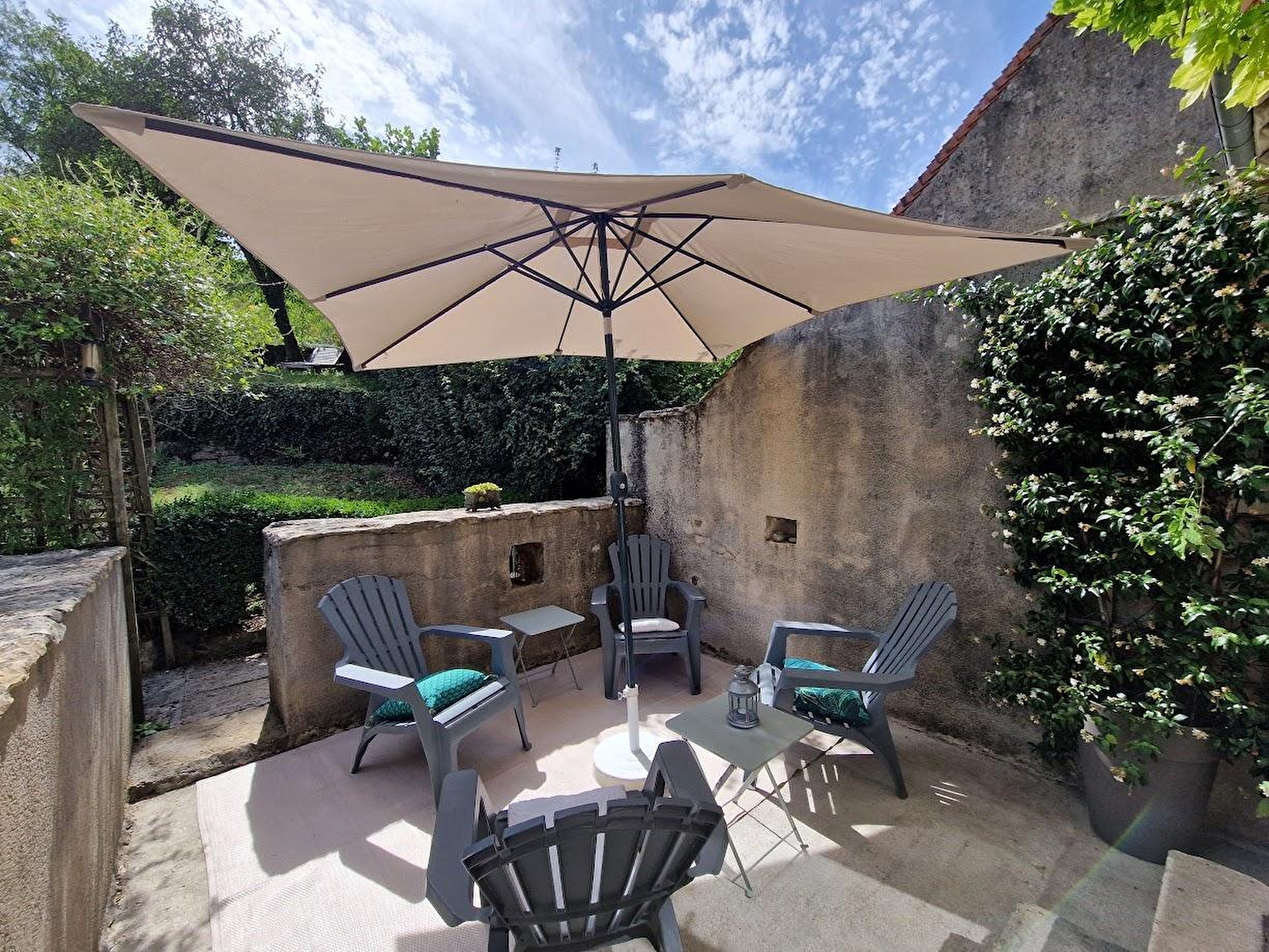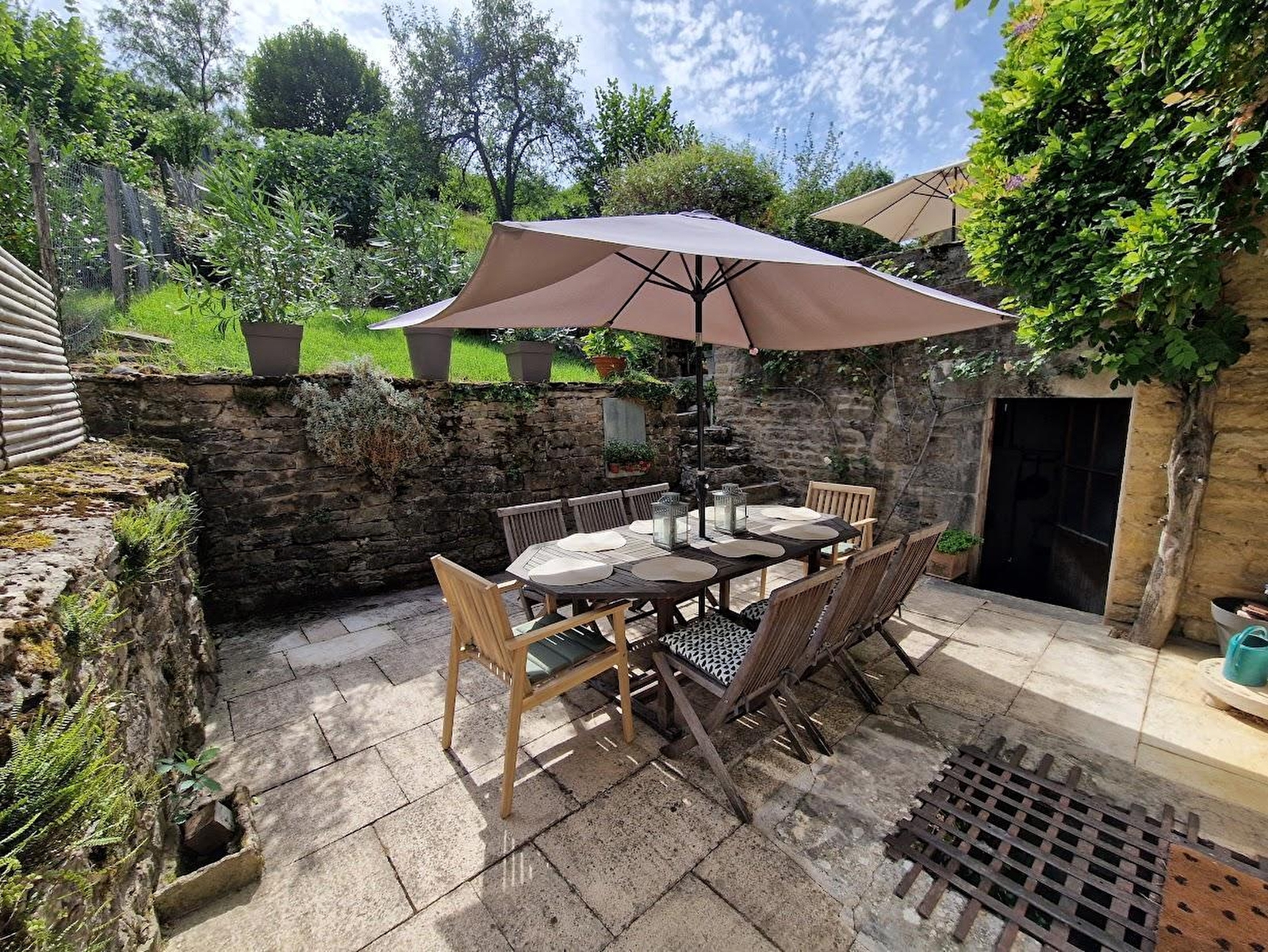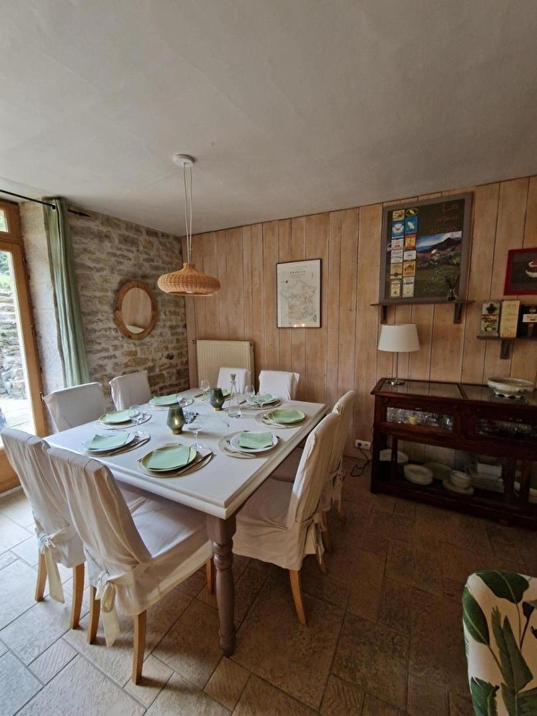 Située au cœur de ce village viticole, cette maison vigneronne pleine de charme sera le lieu idéal pour vos prochaines vacances. Elle se compose d'une cuisine toute équipée, d'un coin salon avec espace salle à manger et d'un WC indépendant. A l'étage, un salon avec TV et coin bibliothèque et 3 chambres chacune aménagée avec 1 lit double (140*200). Un lit pour enfant jusqu'à 6 ans est également mis à disposition dans l'une des chambres. Salle de bain avec baignoire et WC. Pour votre plus grand confort, les lits seront faits à votre arrivée et les serviettes de toilettes sont fournies. Un local pour ranger les vélos et les poussettes. Parking pour garer la voiture juste en face. Côté extérieur, une terrasse au rez-de-chaussée avec barbecue vous permettra de profiter des beaux jours. Vous trouverez également une seconde terrasse plus intimiste au 1er étage. Vous pourrez également profiter d'un jardin en terrasse, avec un magnifique point de vue sur Château-Chalon (cet accès est déconseillée aux jeunes enfants). Idéalement situé, au cœur du vignoble, vous pourrez partir à la découverte de Baume les Messieurs, connu pour ses reculées et sa cascade des tufs, de Château-Chalon, classé parmi les plus beaux villages de France. Vous trouverez dans le village de nombreux caveaux de dégustation de vins du Jura ainsi qu'un bistrot, et aux alentours des fromageries qui vous permettront de découvrir les produits locaux , tels que Comté, Morbier... Ce logement est également idéal pour les pêcheurs (pêche à la truite dans la rivière de la Seille à 250 mètres). A Noter qu'un forfait ménage obligatoire s'appliquera automatiquement au moment de la réservation.