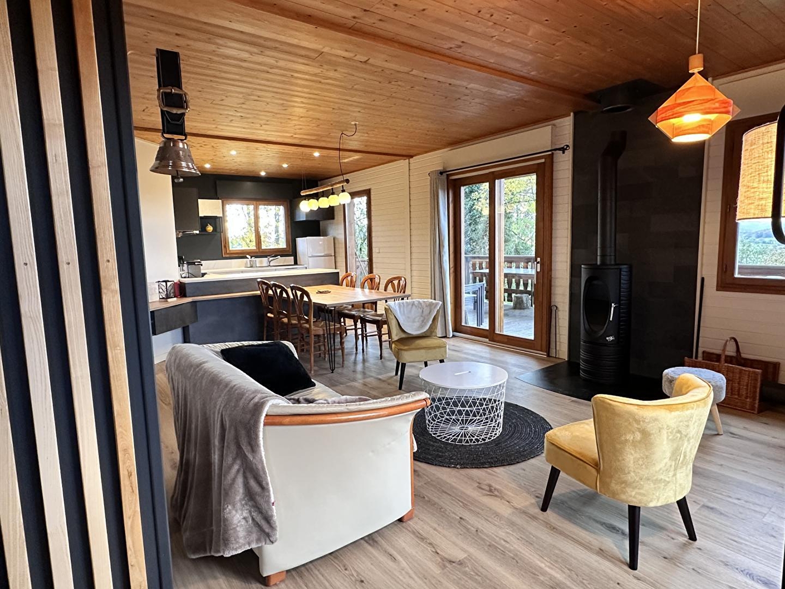 Le chalet l‘Erythrône se compose d'un très clair séjour où le soleil est toujours présent du matin jusqu'au soir, avec un coin salon composé de 2 canapés et poêle à bois, une cuisine toute équipée (lave vaisselle, frigo-congélateur, micro-ondes, four, 3 feux gaz et 1 plaque électrique), un très grand balcon couvert orienté sud où vous pouvez manger, de 3 chambres: une chambre avec un grand lit de 160 cm, une chambre avec 2 lits jumeaux de 90 cm et une chambre avec 2 lits 90 cm. Une salle d'eau avec douche et lave-linge et 1 wc indépendant. Le chalet est situé en bout de chemin privé, avec un parking pour 2 voitures, privatif. Il jouxte 4 hectares de prés et bois entretenus par nos 2 ânes. La location du chalet peut être effectuée seule ou en complément de notre grand gîte de groupe situé à 500 m.