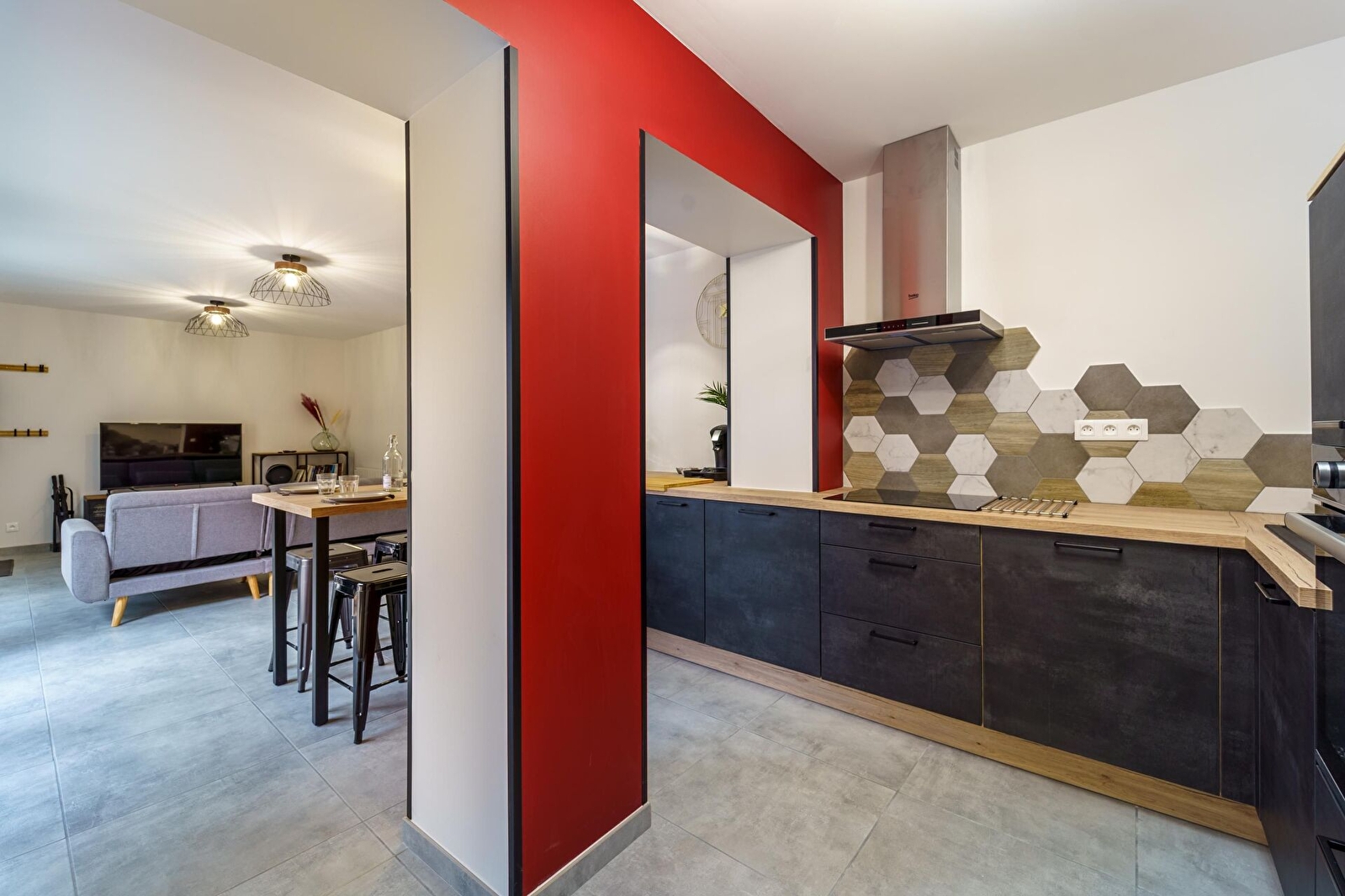 La pièce à vivre de 36m2 est composé d’un coin salon et d’une cuisine ouverte. Équipement de qualité. TV écran plat. Accès direct sur la terrasse privative (salon de jardin et barbecue). WIFI.