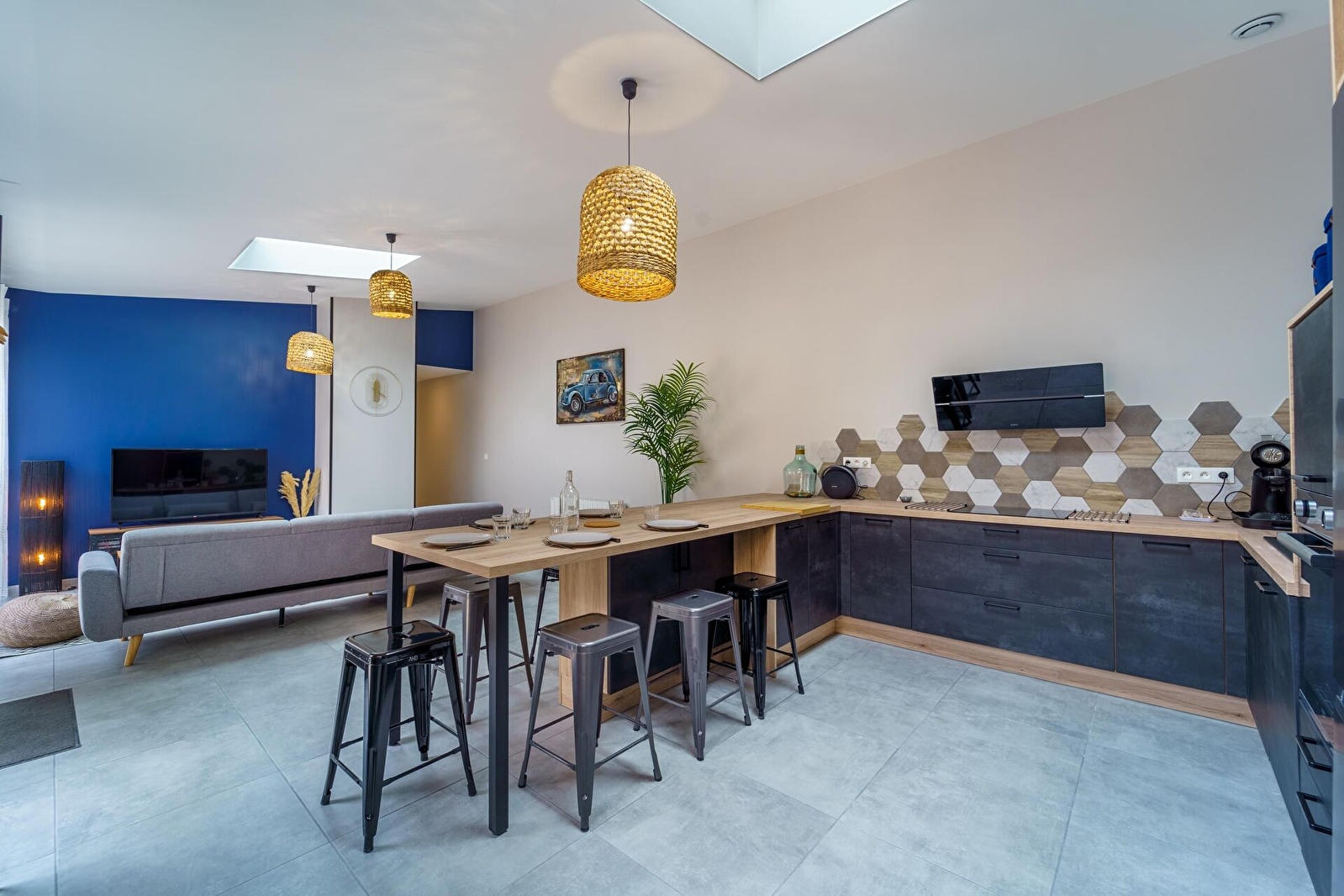 Cuisine entièrement équipée : bouilloire (avec du thé fourni à votre arrivée), appareil à raclette, autocuiseur, cafetière Senseo (avec dosettes fournies à votre arrivée), réfrigérateur, congélateur, aspirateur sans fil Dyson, lave-vaisselle (avec une dosette fournie), ensemble de condiments pour vos repas.
