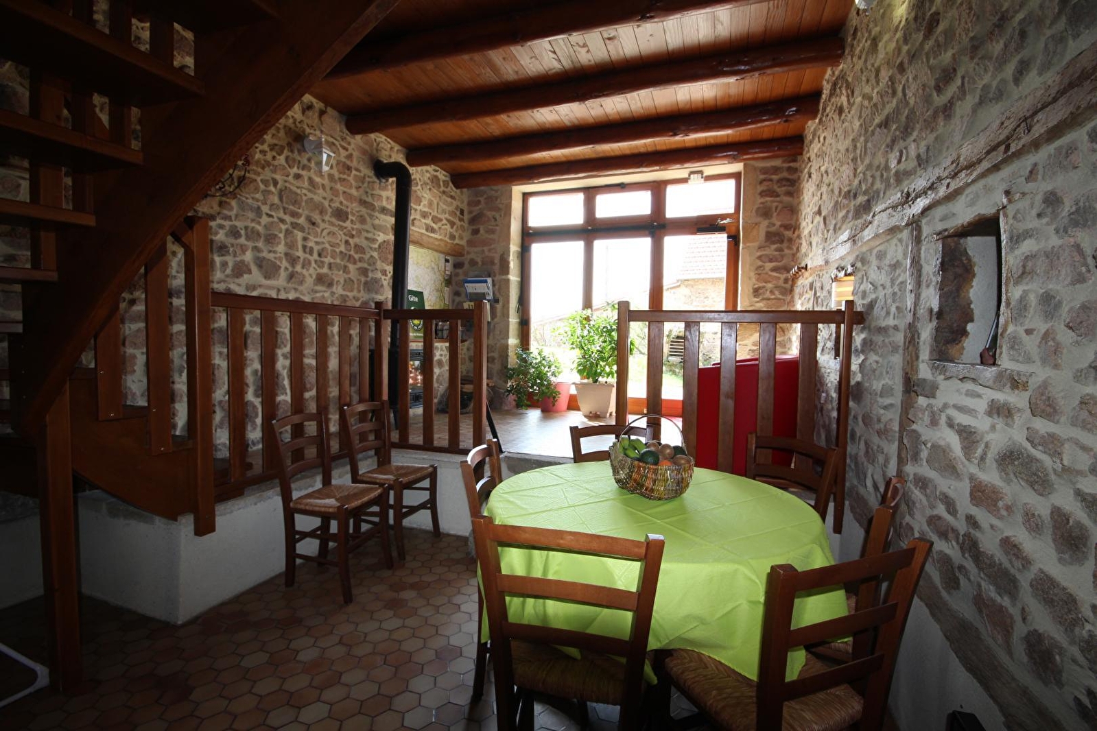 Composition : Maison individuelle sur 2 niveaux jouxtant la maison des propriétaires. Wifi. Poêle bois (bois fourni feu d'agrément "plaisir"). Chauffage électrique. Rdc : séjour-cuisine. 1er étage : salon TV, 3 chambres (lit 2 p. 160x200cm / 2 lits 1 p. 110x200cm / lit 2 p. 160x200cm) avec salle d'eau privée (douche & wc). Double terrasse. Jardin commun (ping-pong, balançoire, bac à sable), plancha. Parking privé. Commerces et services 7 km. Gare 7 km. Gares TGV Mâcon Loché 50 km.