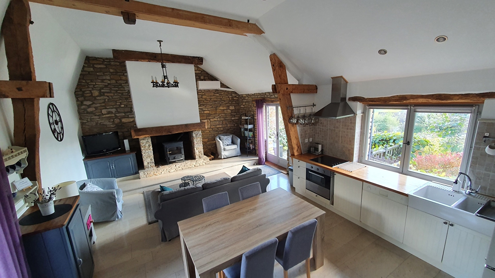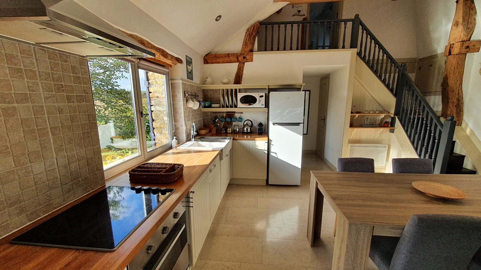 Le gîte comprend un salon/séjour/cuisine spacieux avec poêle à bois, télévision (réception satellite chaînes françaises et anglaises) et accès internet Wifi (réseau fibre)…