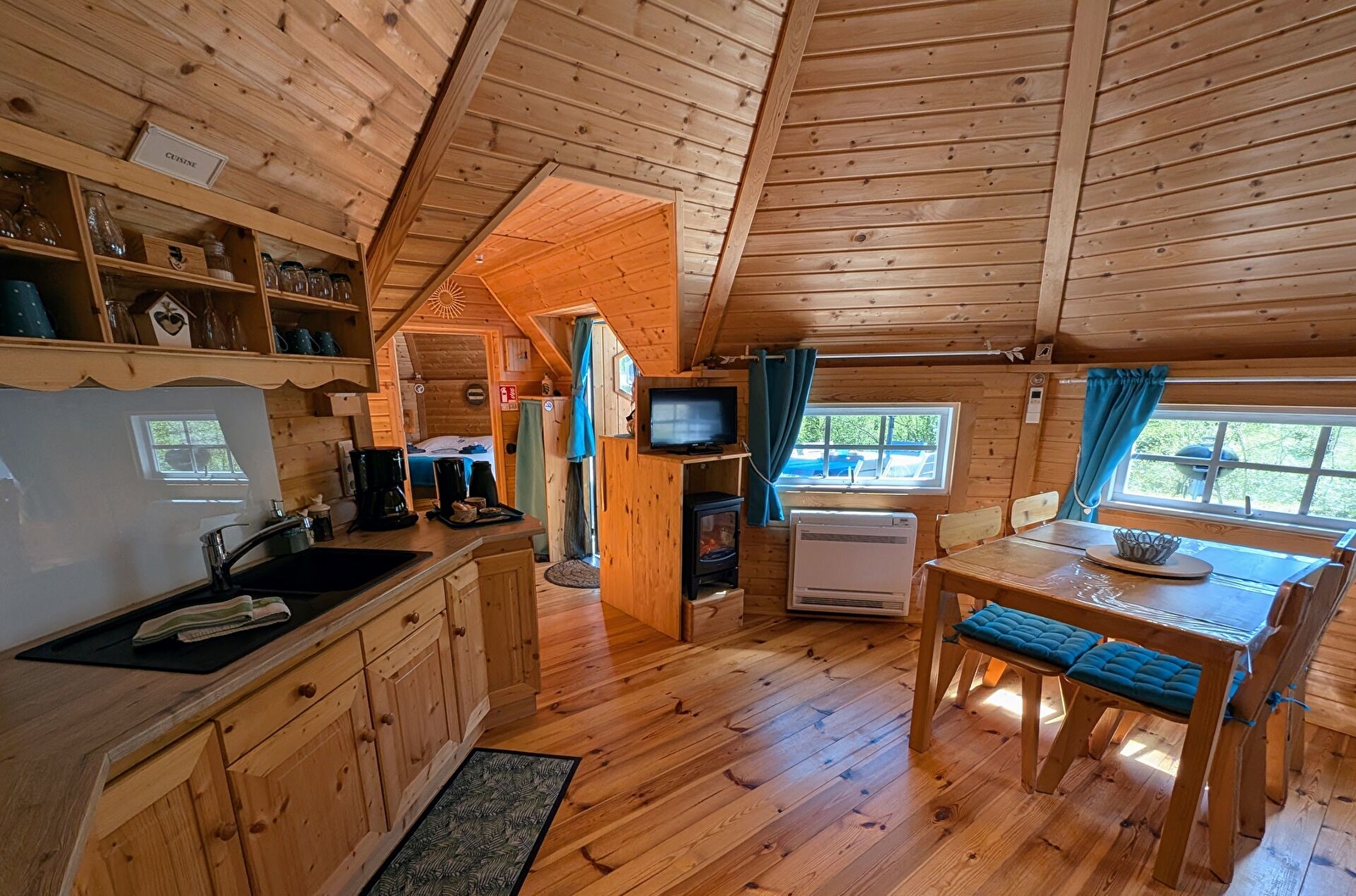 Ambiance chaleureuse pour ce kota en bois équipé de :
