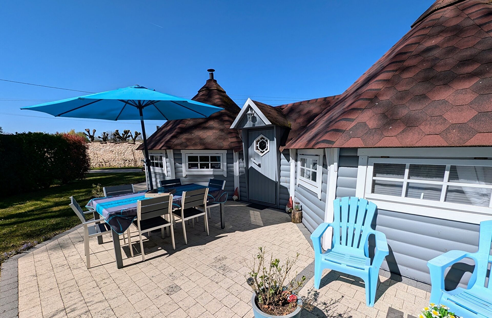 une chambre avec un lit double (140x190) et deux lits superposés (90x190), une pièce à vivre avec cuisine équipée (plaque de cuisson, réfrigérateur, évier, micro-ondes ou mini-four selon modèle), une salle d’eau avec douche, lavabo et WC, une grande terrasse privative avec mobilier de jardin et barbecue.