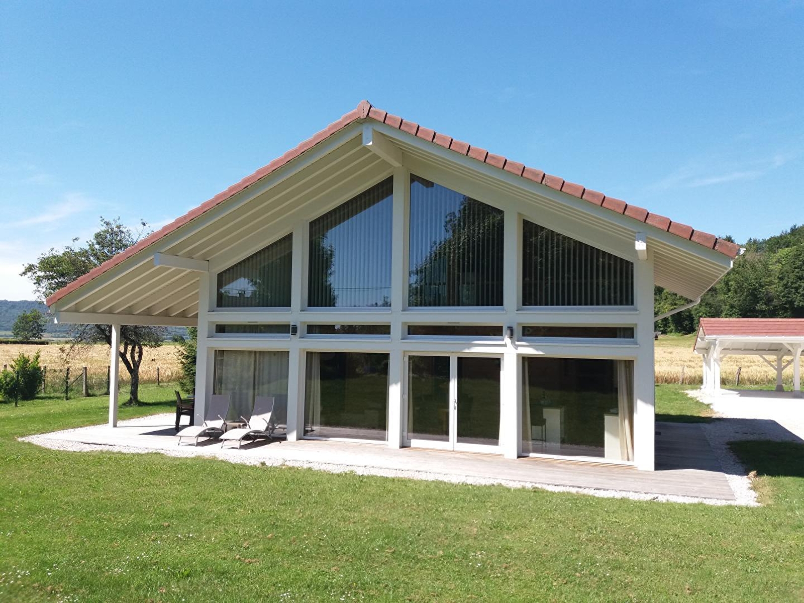 Le chalet bien-être de très grand confort avec sauna et baignoire balnéo est situé au coeur de la région des Lacs, à 1km de Chalain. Chaleureux et lumineux, ici tout est prévu pour la détente et le bien-être. Au rez de chaussée: hall d'entrée, espace buanderie, toilettes, vaste séjour avec cuisine ouverte, baies vitrées offrant une magnifique vue sur l'extérieur, salle de bain avec sauna, baignoire balnéo et douche à l'italienne, ch1: 1 lit 160X200. A l'étage, ch2 : 2 lits 1 pl et mezzanine avec également 2 lits simples. Grande terrasse, salon de jardin, barbecue, chaises longues et terrain attenant non clos. Literie en 0.80x2m pouvant être installées en lit simple ou double. Tarifs hors saison en fonction des périodes et du nombre de personne (voir détails sur le site www.gitejura.com). Pentecôte et Ascension : tarif sur demande auprès de la propriétaire.Tarif hors saison à partir de 700 euros en fonction du nombre de personnes. 1 seul animal accepté : 35 euros pour le séjour ATTENTION JUILLET ET AOUT uniquement location sur 2 semaines