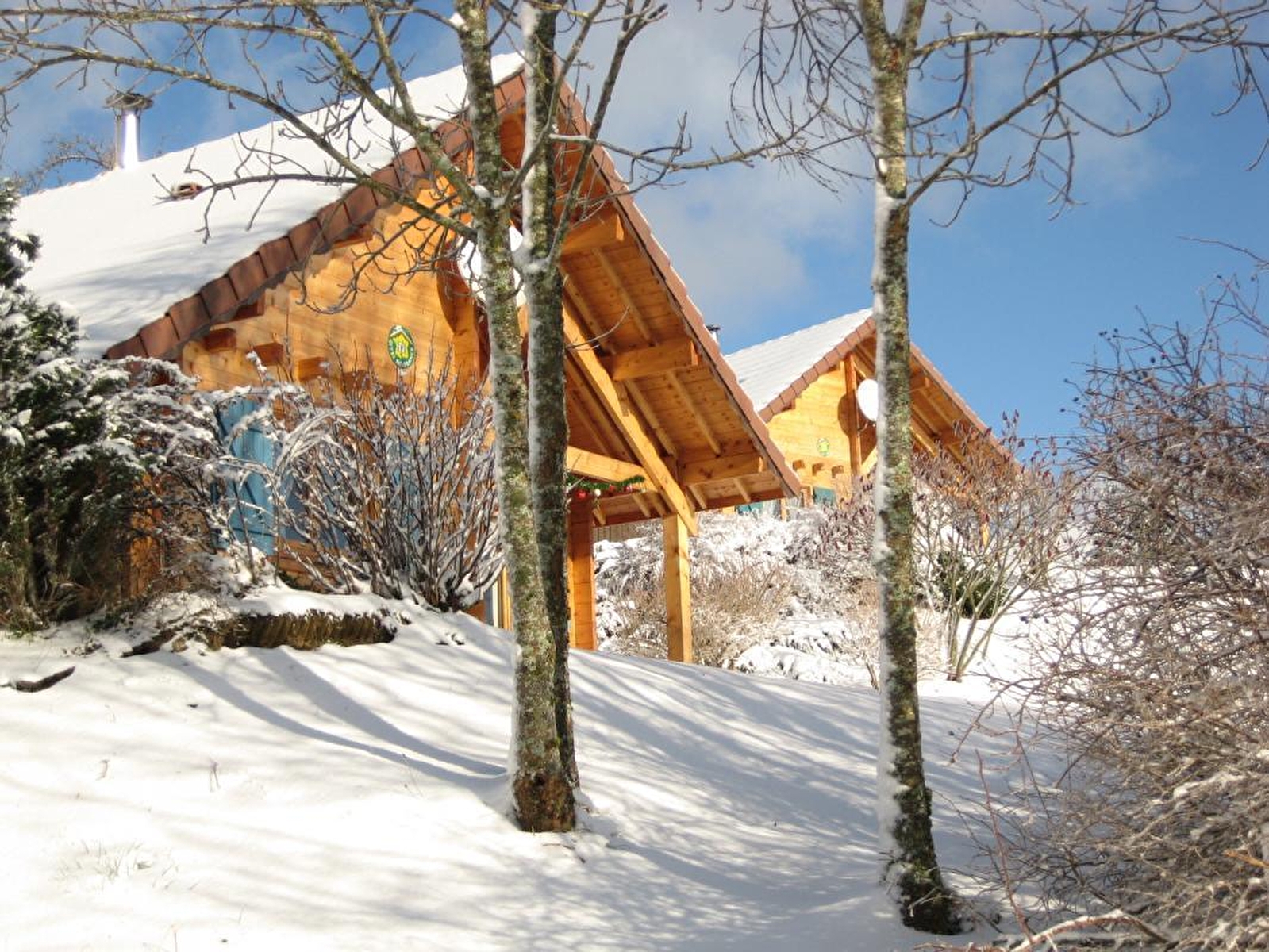 Chalet indépendant de plain pied. Séjour-salon, poêle à bois, lecteur DVD, cuisine intégrée, ch1: 1 lit 2 pl (160X200 cm), ch2: 2 lits 1 pl, salle d'eau, terrasse semi-couverte, jardin non clos, salon de jardin, barbecue. Chauffage électrique et bois (gratuit). Luges et jeux pour enfants. Terrain de pétanque. Week-end sur demande auprès du propriétaire. Accès internet par wifi. Lits faits à l'arrivée. Forfait ménage variable de 35 € à 50 € avec ou sans fourniture des linges de toilette, il doit être réserve directement auprès des propriétaires. Location uniquement à la semaine du samedi au samedi.