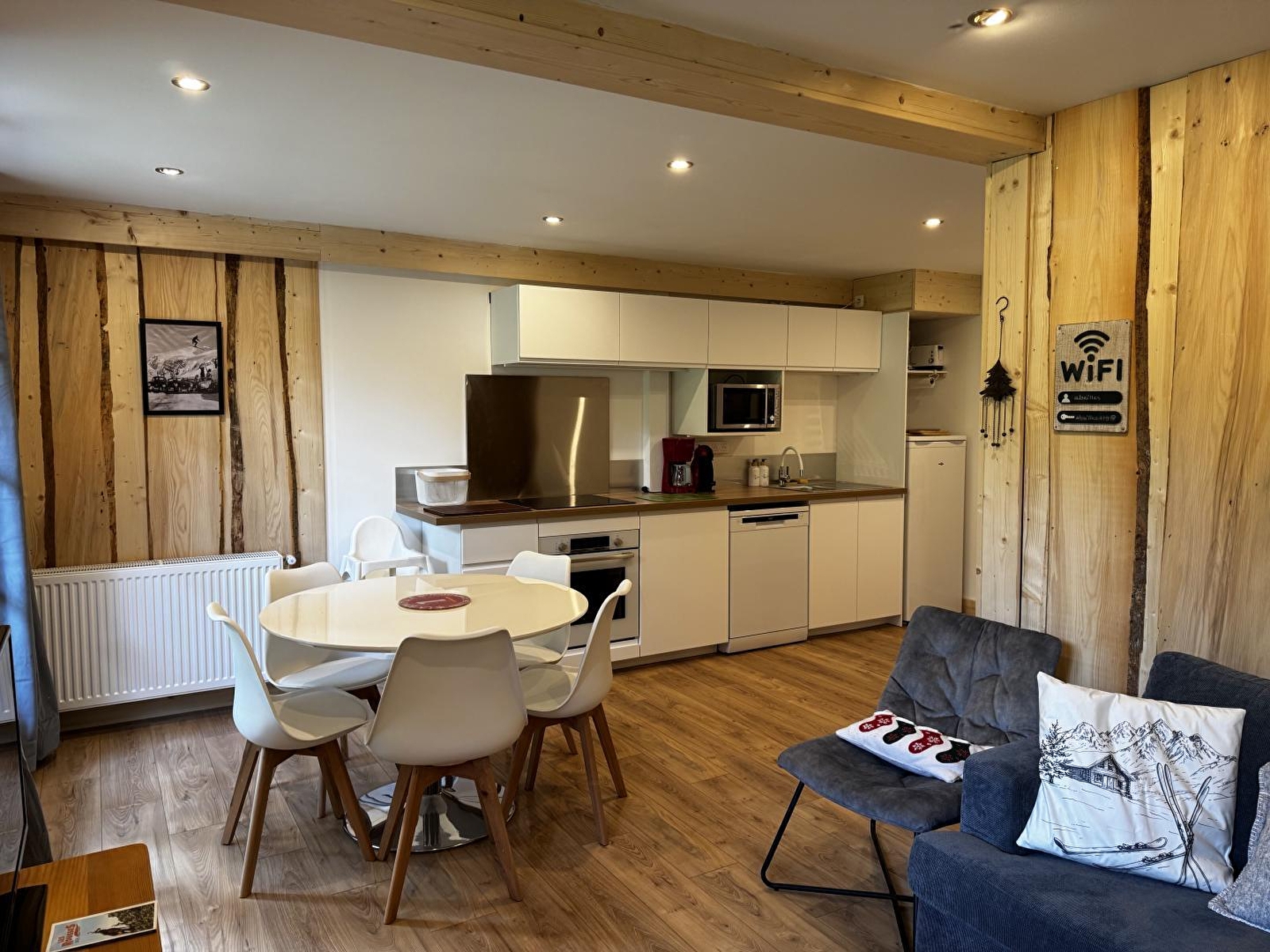 A 500 m du village (10 min à pied), à proximité de la forêt du Risoux et des pistes de skis de fond, logement aménagé au rez de chaussée d'un chalet où se trouvent d'autres gîtes. Coin-cuisine (micro-ondes), séjour-salon avec banquette et grosse cheminée à foyer ouvert, terrasse, salon de jardin, barbecue. Ch1 : 2 lits 1 pl. Ch2 : 1 lit 2 pl. Salle de bain, WC indépendant. Terrain commun non clos, chauffage central. Parking déneigé l'hiver. Toutes charges comprises. Hors saison, tarif weekend 200€